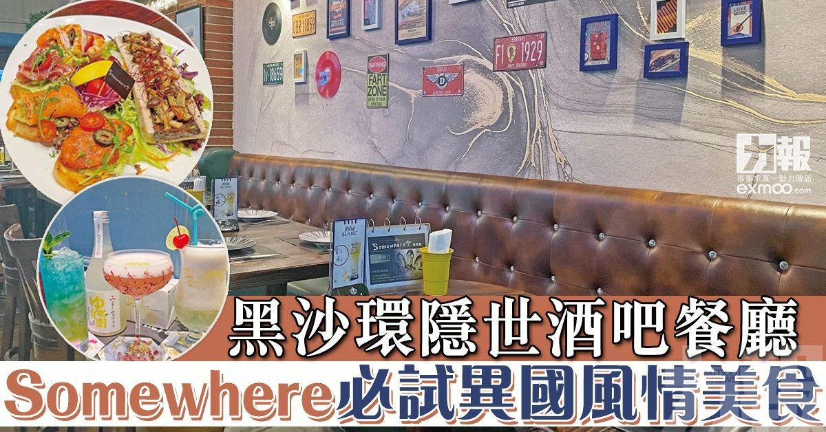 在黑沙環中街近海傍不遠處,走親民「餐Bar」路線的Somewhere在這裡已踏入第六個年頭,老闆說想把餐廳致力打造親民的西餐品牌,讓大家知道食牛扒不一定要到貴價的高級餐廳,一班老友可以在此聚在一起,吃吃喝喝聊聊笑笑,享受那種隨性的氣氛。