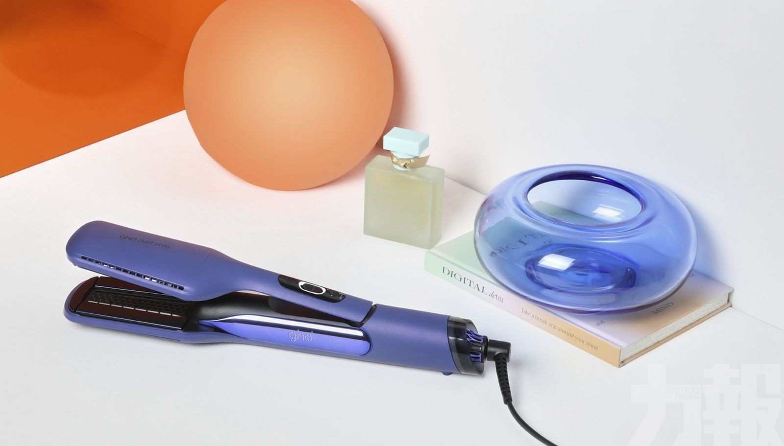 ghd 新星藍色限量版 Duet 雙效熱風造型夾 HK$3,295(附送隔熱收納袋 HK$220)。(相關機構圖片)