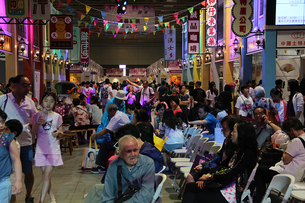 在「2016粵澳名優商品展」展場,中午場內人頭湧湧,當中以出售食品的檔位最為「旺場」,不少看到市民及旅客手持一袋袋「戰利品」離開。有市民稱,展覽舉辦多年,以往亦有到場「掃貨」,今次特意前來選購參茸海味,花費約2,000元。