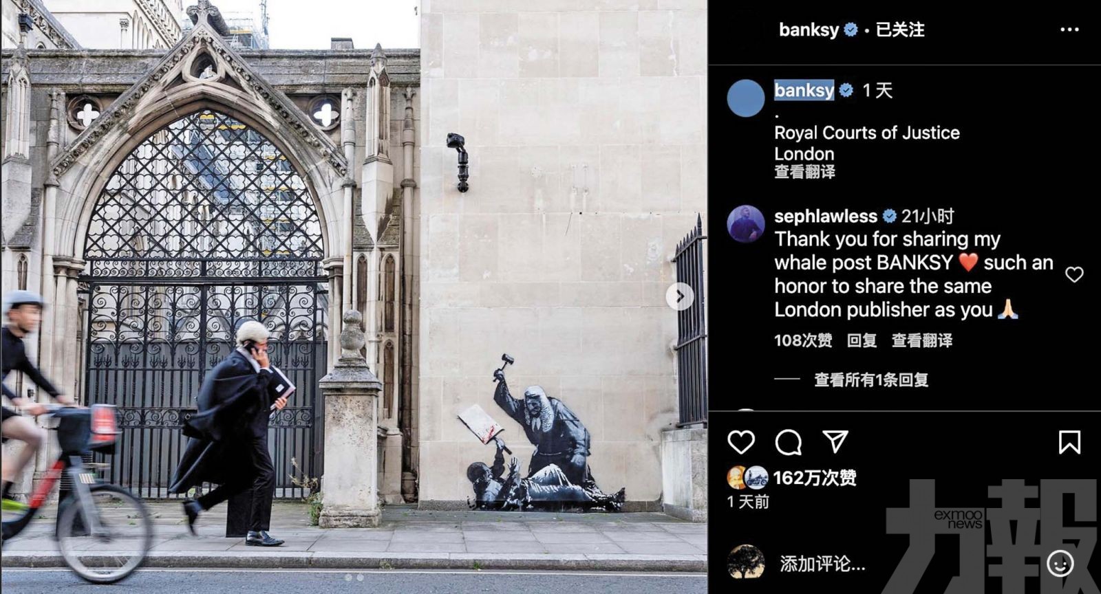 班克西隨後在Instagram上傳該作品的照片,並以「倫敦皇家司法院」為題,確認這幅塗鴉確實出自其手筆。由於該建築屬於受保護歷史遺產,任何破壞行為都可能構成刑事罪名。若損害金額超過 5000英鎊,肇事者最高可面臨 10年徒刑;若低於此金額,則可能被判處 3個月監禁 或 2500英鎊罰款。