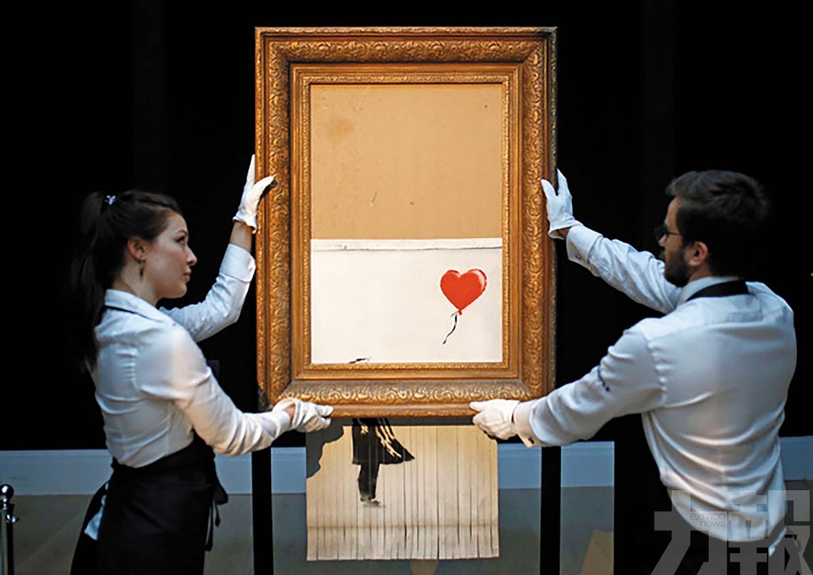 班克西在2018年自毀的「 氣球女孩 」,時隔三年更名為《 愛在垃圾桶 》拍出數倍價格。 (網絡圖片)
