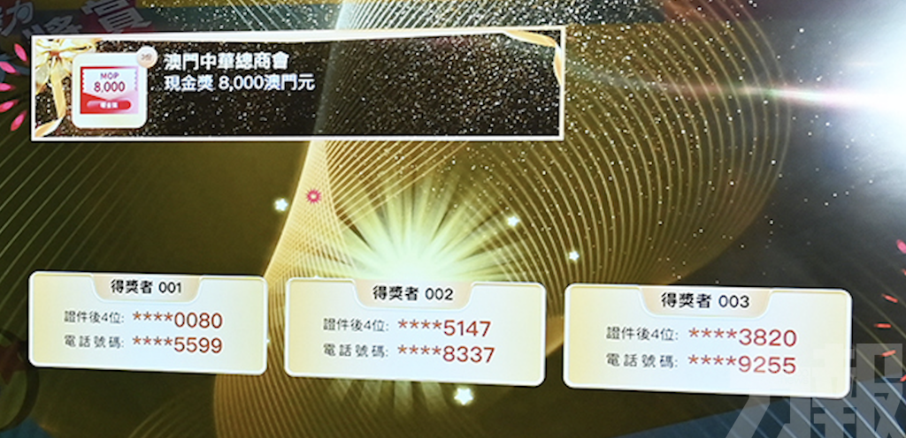 九月十一日上午十一時,主辦單位在中總會址進行每周現金獎抽獎,在澳門中華總商會副理事長許樂敏、經濟及科技發展局工商業支援處處長陳子瑩、博彩監察協調局代表杜幸愉的見證下,由中總工商事務部部長阮建昆抽出三名幸運兒。