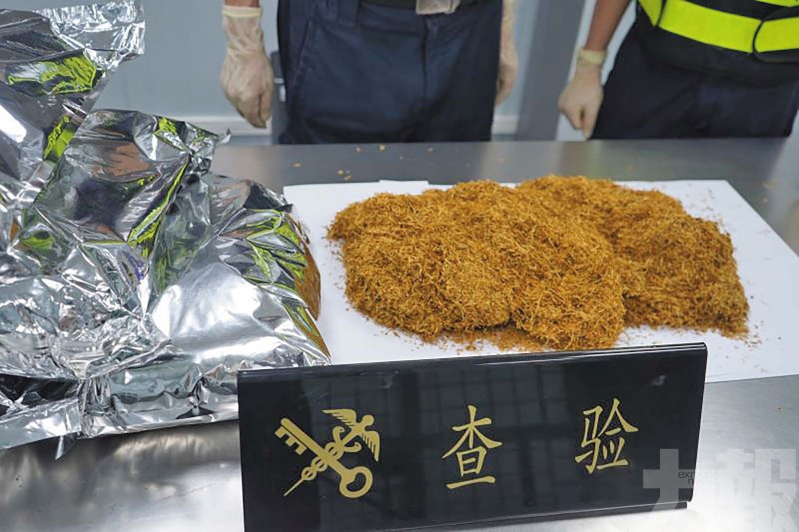 拱北海關在西域碼頭跨境電商出口渠道查獲涉嫌走私香煙煙絲案件。(拱北海關圖片)