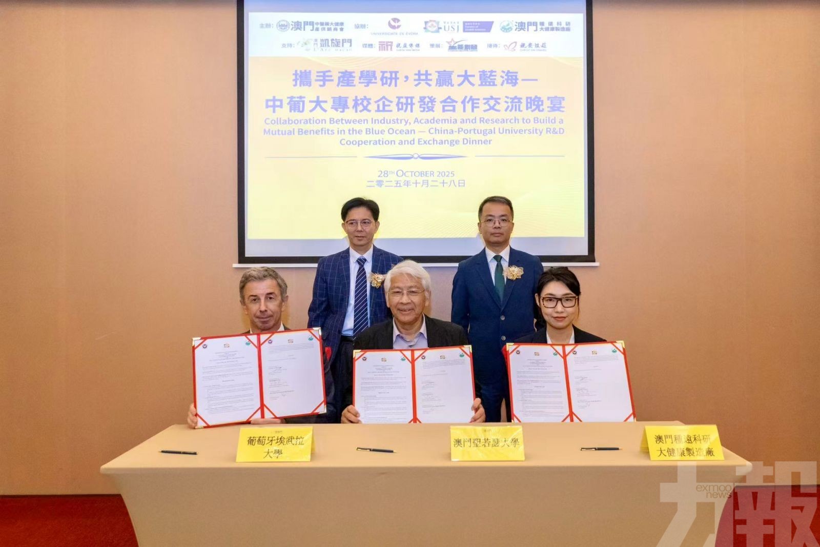 由澳門中醫藥大健康產供銷商會主辦,聖若瑟大學與澳門種遠科研大健康製造廠(下稱澳門種遠科研)聯合承辦的“攜手產學研,共贏大藍海一中葡大專校企研發合作交流晚宴”於今(28)日傍晚假澳門凱旋門宴會廳隆重舉行。本次活動以“攜手出海,健康同行”為主題,彙聚中葡政府代表、高校領袖、企業精英及各界嘉賓,共同探討大健康產業國際化發展路徑,推動中醫藥大健康走向世界,積極響應“健康中國”戰略,彰顯澳門特區作為中葡平臺的重要角色。