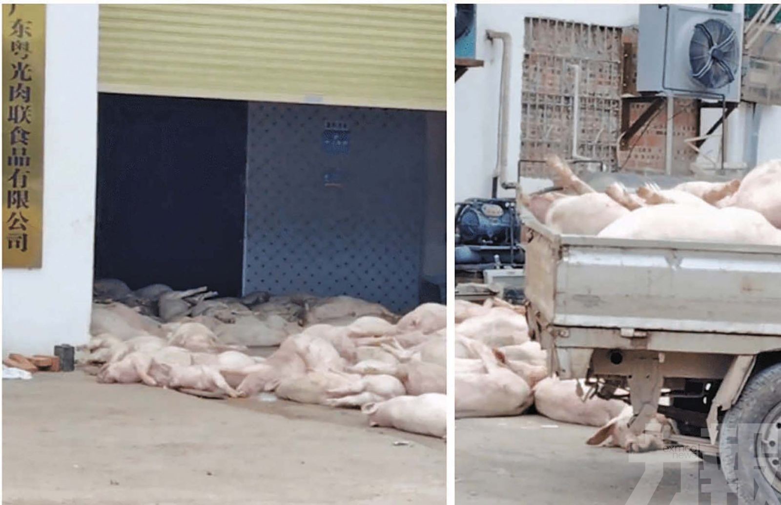 據內地媒體報道,網傳影片顯示,「廣東粵光肉聯食品有限公司」門前空地堆滿死豬,數量龐大,旁邊運輸車貨架上也堆放著屍體。記者核實,該公司全稱為「羅定市粵光肉聯食品有限公司」,主要經營冷凍食品及肉製品加工,營業範圍並不包括生豬養殖或死豬處置。