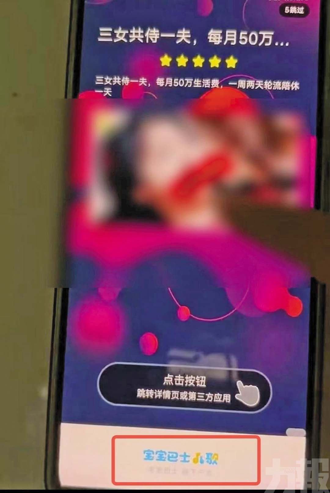 內地知名兒童教育品牌寶寶巴士APP被指出現多則成人擦邊低俗廣告。 (網絡圖片)