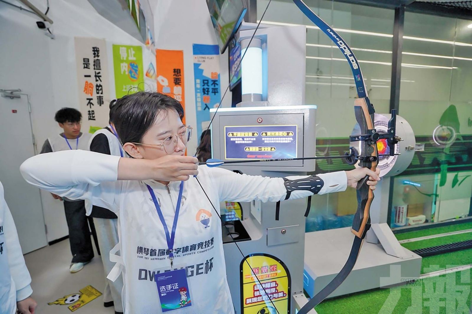 本次賽事設數字射擊、數字射箭、數字飛盤、數字保齡球、數字足球及數字飛鏢六大項目,融合VR、AI、5G等前沿技術,打破傳統體育界限,構建沉浸式競技場景。橫琴伯牙小學學生歐陽俊君表示,OWANGE運動超樂場讓他可以一次性體驗多個體育項目,有助於增強他對各個運動項目的瞭解。