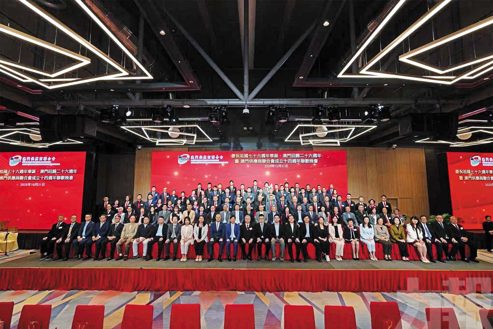 澳門供應商聯合會於10月30日假旅遊塔四樓宴會廳,隆重舉行「慶祝祖國七十六週年華誕、澳門回歸二十六週年暨商會成立十四週年聯歡晚會」。現場嘉賓雲集,政商界代表齊聚一堂,場面熱烈。