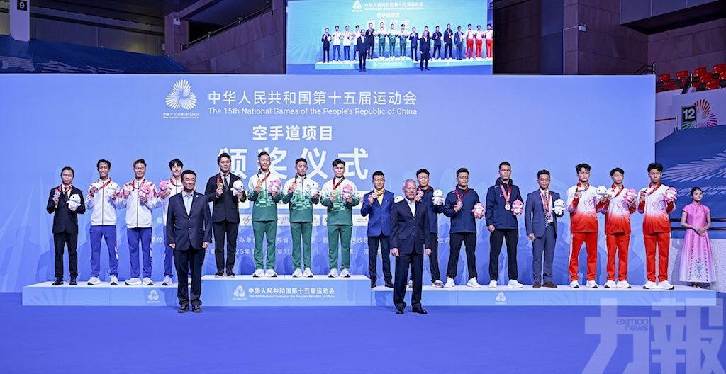 空手道比賽男子業餘組團體型的項目,澳門代表隊連勝四場奪得金牌,頒獎儀式由岑浩輝主持。