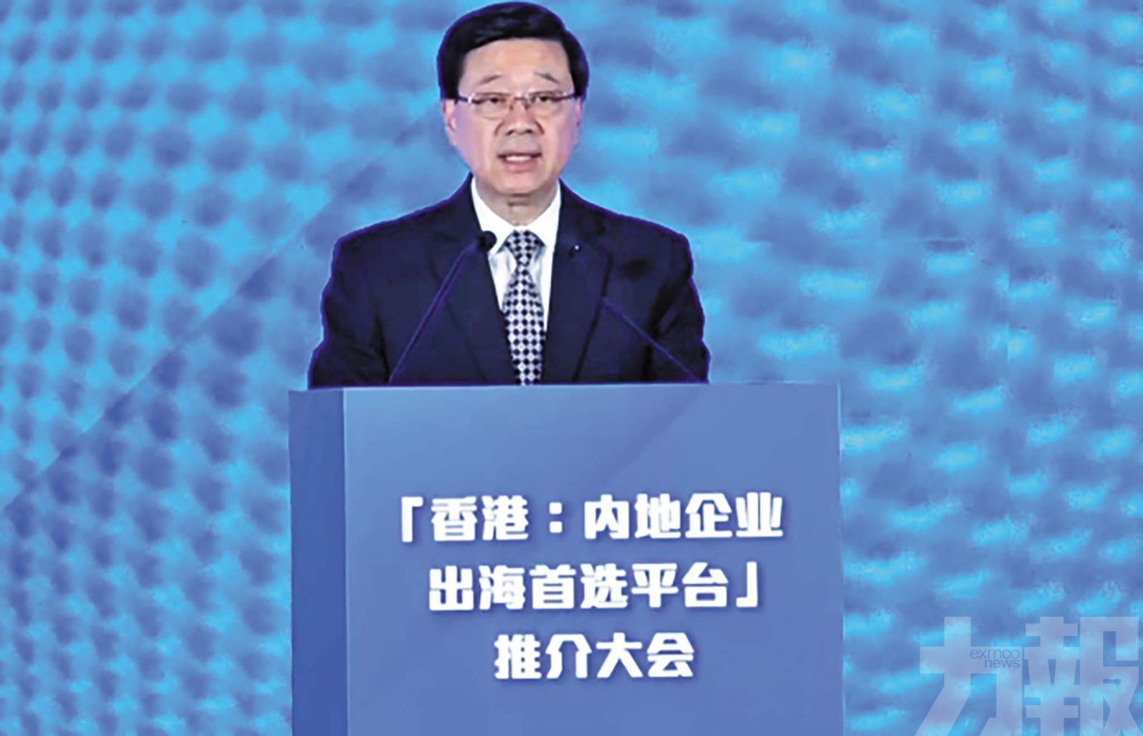 香港行政長官李家超在上海出席「 香港: 內地企業出海首選平台 」推介大會。 (網絡圖片)