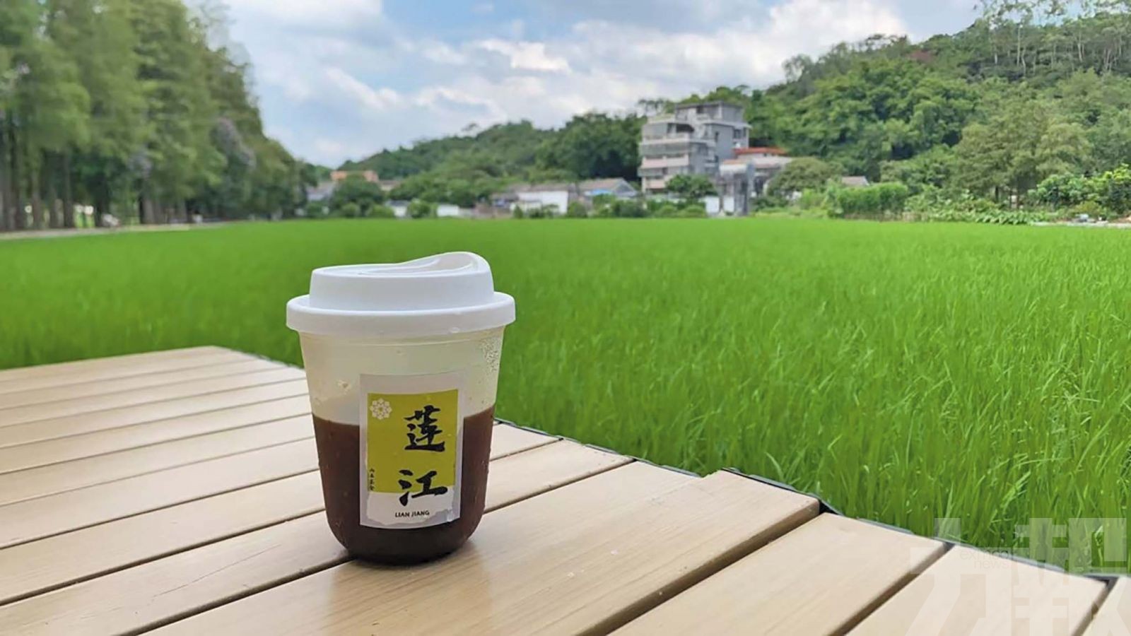 蓮江村稻田邊的咖啡店。(觀海融媒圖片)