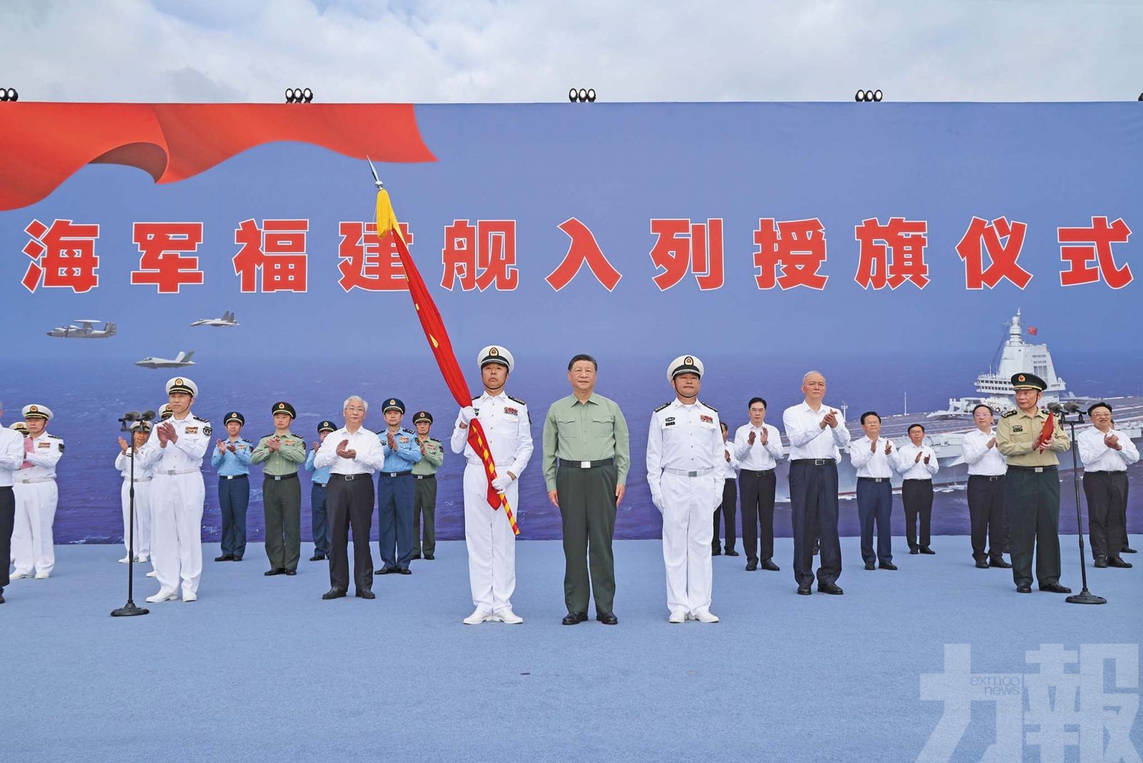 中國第三艘航空母艦、首艘採用電磁彈射系統的「福建艦」,於11月5日下午在海南三亞某軍港舉行入列授旗儀式,標誌中國海軍正式邁入「三航艦」與「電磁彈射」時代。中共中央總書記、國家主席、中央軍委主席習近平親自出席授旗儀式並登艦視察,象徵中國航母建設進入由最高層主導的新階段。