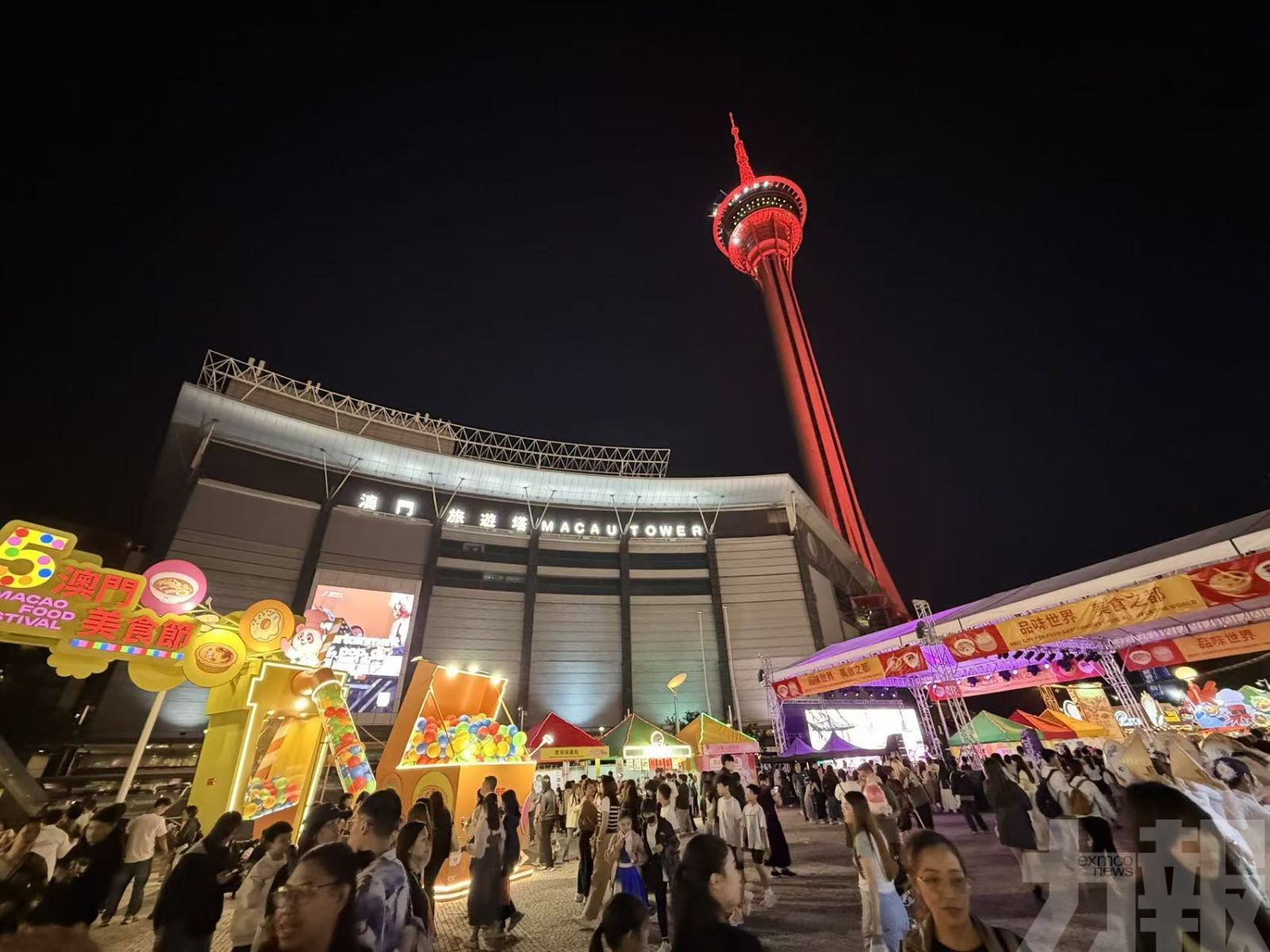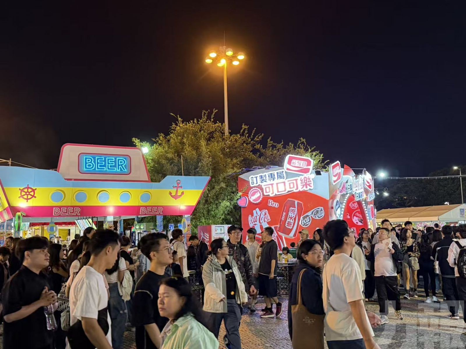 第25屆澳門美食節的首個周日(11月16日)適逢大賽車及全運會,現場人流絡繹不絕,到晚上依然人頭湧湧,不少攤檔出現排隊人龍。