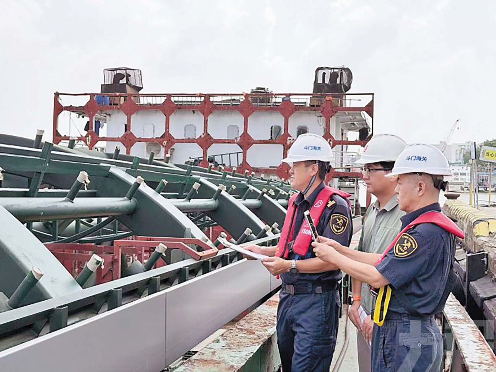 由於鋼結構件體積超長、超寬,傳統陸路運輸難度大且存在安全隱患。為解決大型貨物陸運受限的問題,斗門海關創新推出「智慧監管+模式優化」的雙軌方案,構建「裝運視頻+船舶AIS 軌跡」的全流程監控體系。透過高清攝像頭與船舶自動識別系統,海關能夠實時掌握裝運細節與航行動態,確保運輸規範且異常能即時預警。