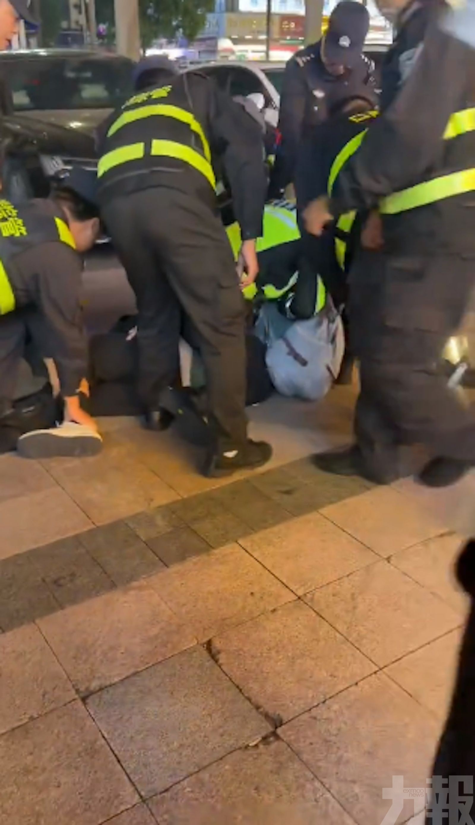 周一(17日)晚上,社文平台流傳一名男子在珠海拱北口岸附近區域持刀隨機傷人。影片顯示,一名身穿綠色短袖衣服、孭背包的男子,手持生果刀刺向一名男子,對方一度躺地求饒,附近路人慌忙走避,疑犯其後試圖逃跑,被多名口岸綜管人員持盾牌制服。