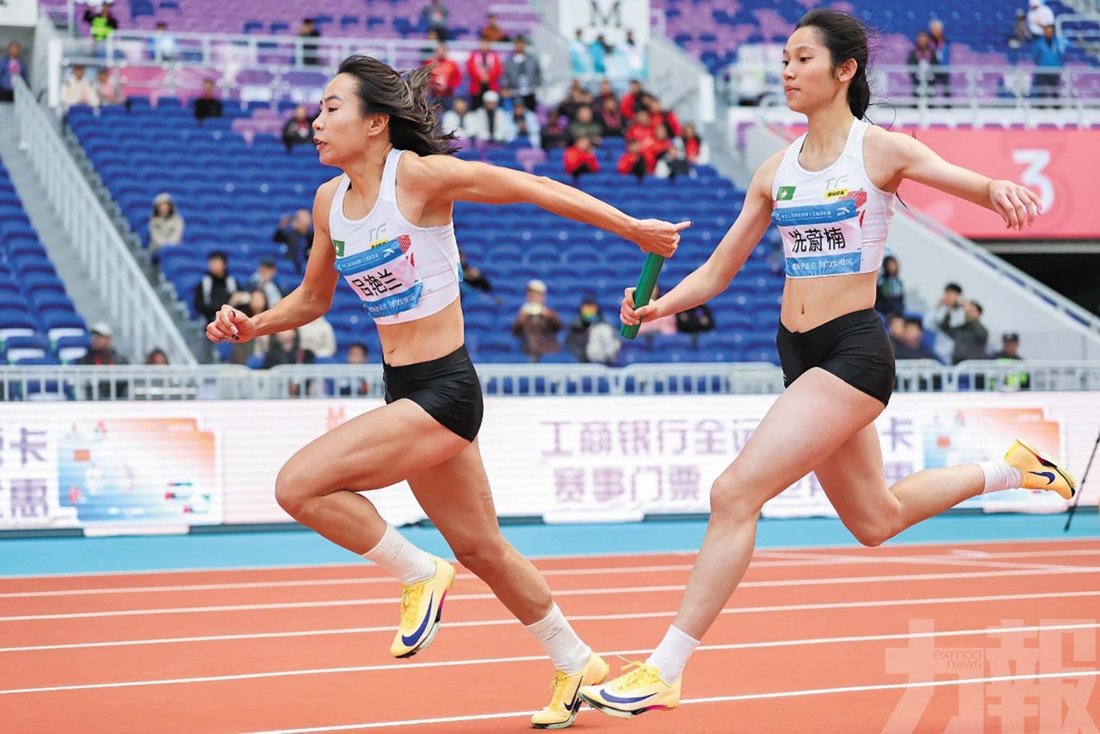 田徑賽場上演接力項目,澳門隊郭曉楠(KUOK HIO NAM)、黃靖淞(HUANG JINGSONG)、陳建華(CHAN KIN WA)、梁洛堯(LEONG LOK IO)在男子4X100 米接力預賽跑出41秒60,總成績排第15位,未能晉級;女子4X100米接力預賽,澳門隊冼蔚楠(SIN WAI NAM)、呂艷蘭(LOI IM LAN)、王嘉蕙(WANGKA WAI)、林霜霜(LAM SEONGSEONG)跑出49秒25,總成績排第17位,未能晉級,並已完成本屆所有賽事。
