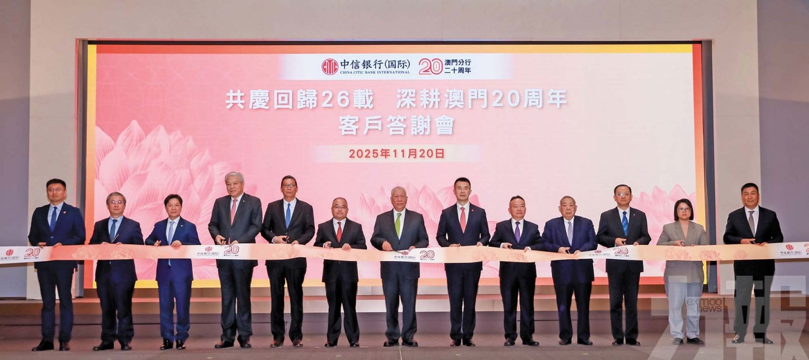 中信銀行(國際)有限公司(「信銀國際」)宣佈,為慶祝澳門回歸祖國及澳門分行成立 20周年誌慶,昨(20)日於澳門旅遊塔會展中心舉辦「共慶回歸26載 深耕澳門20周年客戶答謝會」。