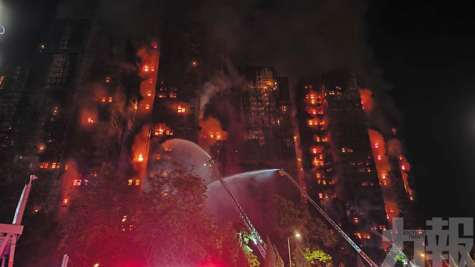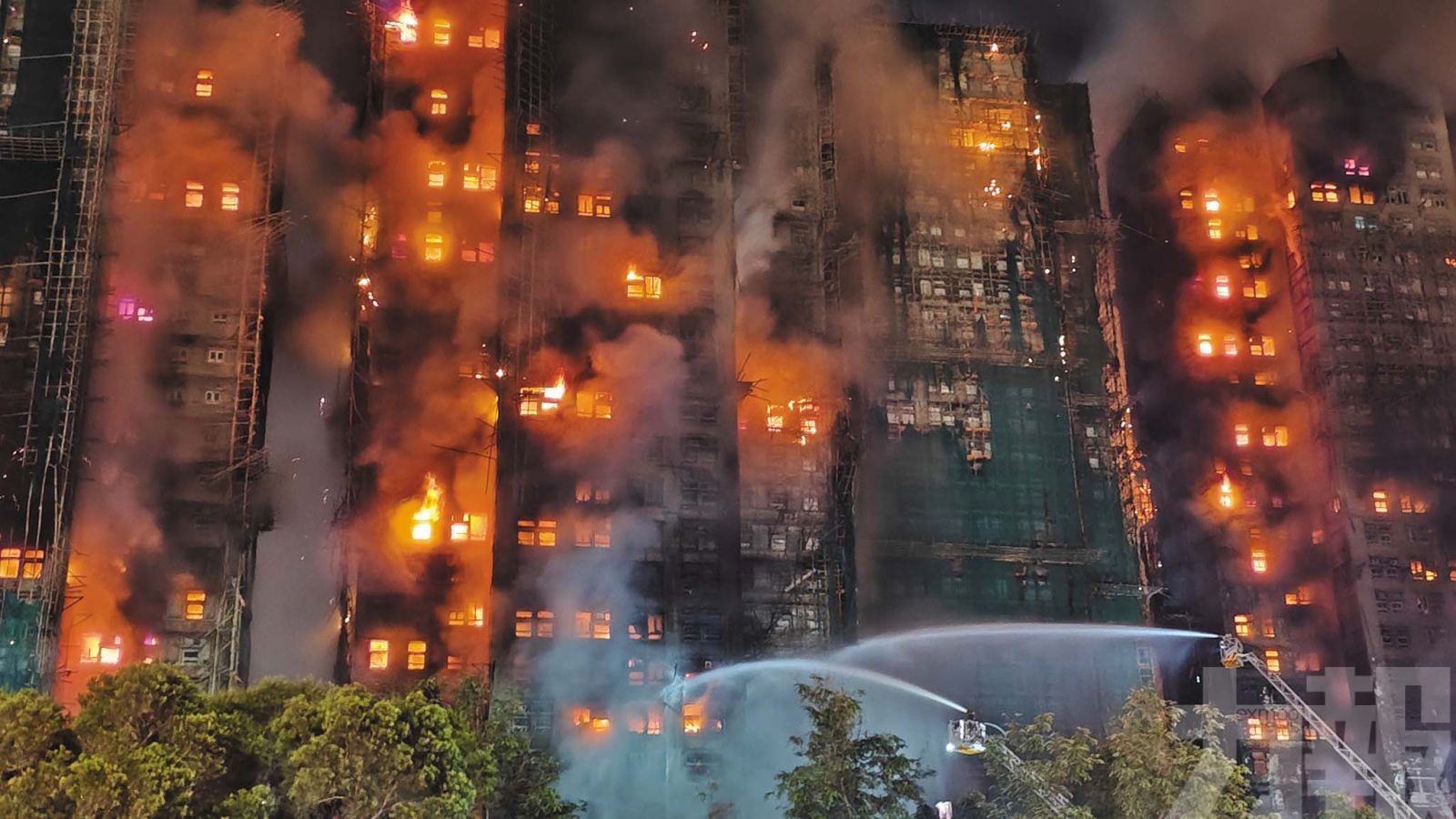香港大埔宏福苑宏昌閣昨(26)日下午發生嚴重火災,短短數小時內火勢一路攀升至最高級別「五級」,濃煙席捲整棟大樓,天空被燒得通紅,大火燒至入夜仍未能撲滅,還波及鄰近的六棟大樓,涉及住戶超過1,900戶。據港府初步統計,截至昨晚11時,已造成13死30傷。傷者當中有7人危殆,12人嚴重。一名服務資歷九年的消防員也在大火中殉職。