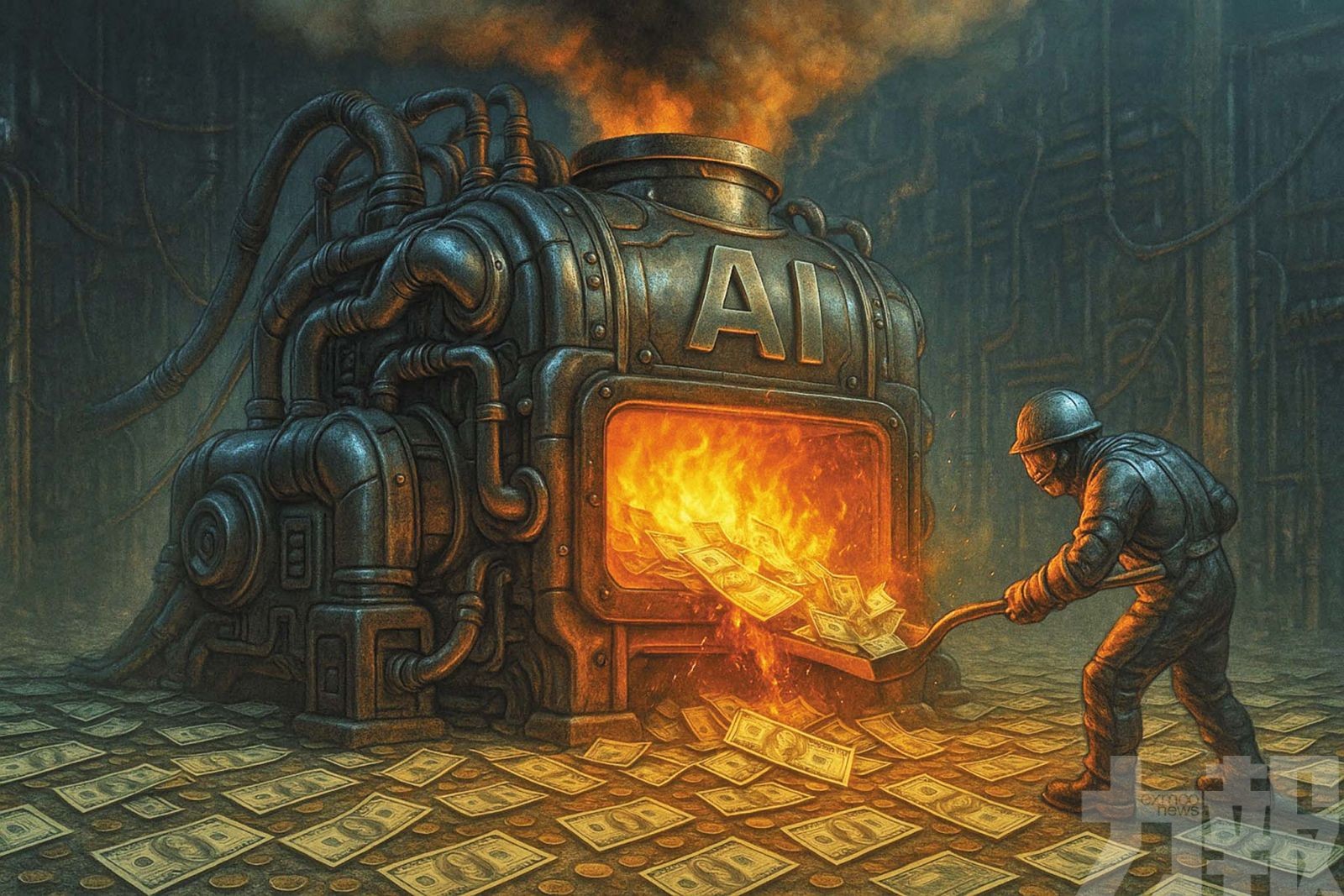 在AI熱潮下,「 寧可砸錢也不能落後 」的邏輯近周遭到投資人質疑。 (AI生成圖片)