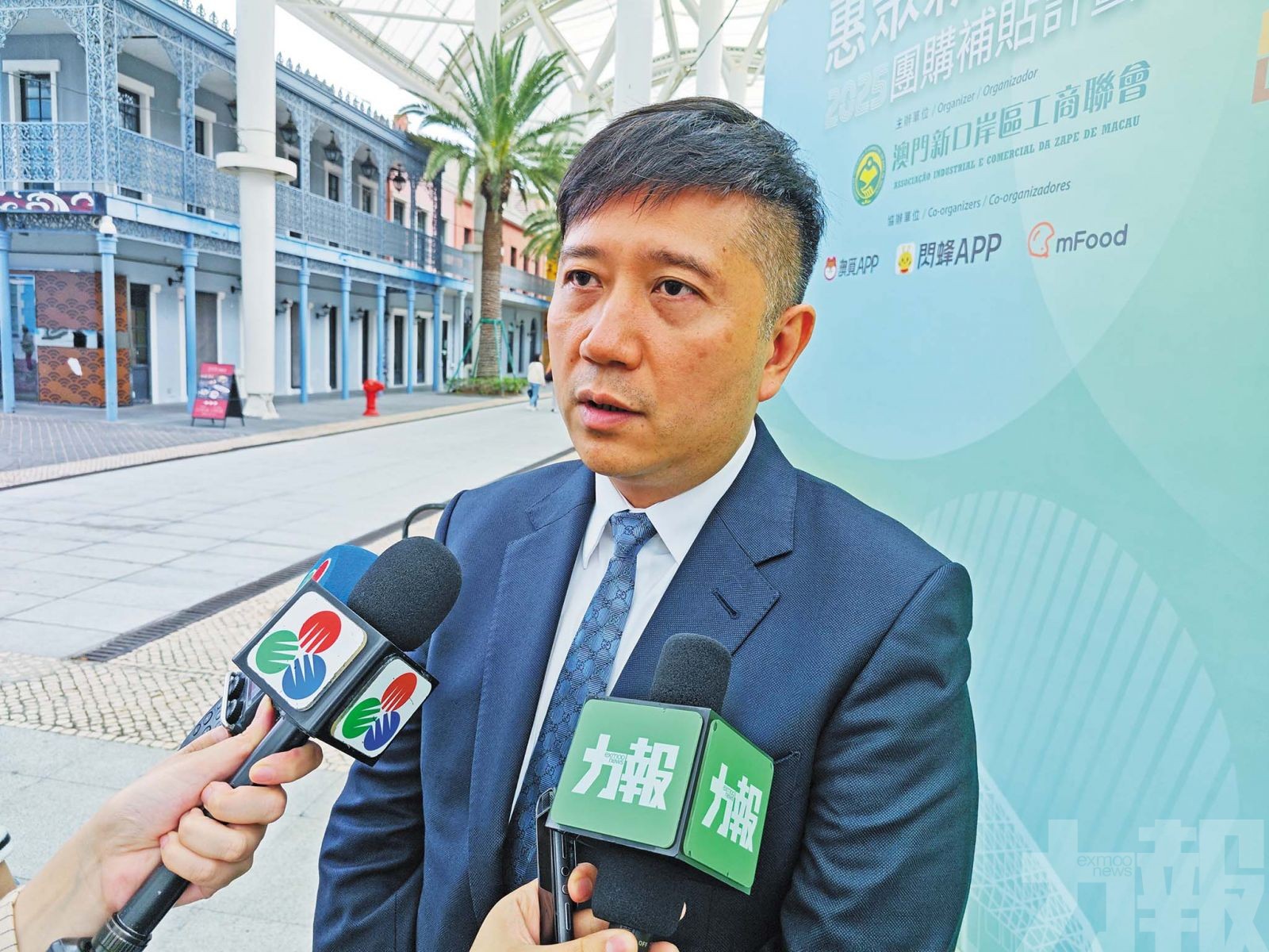 澳門新口岸區工商聯會會長胡達忠呼籲商戶積極參與計劃,攜手共建更具活力的新口岸商圈。(林嘉欣攝)