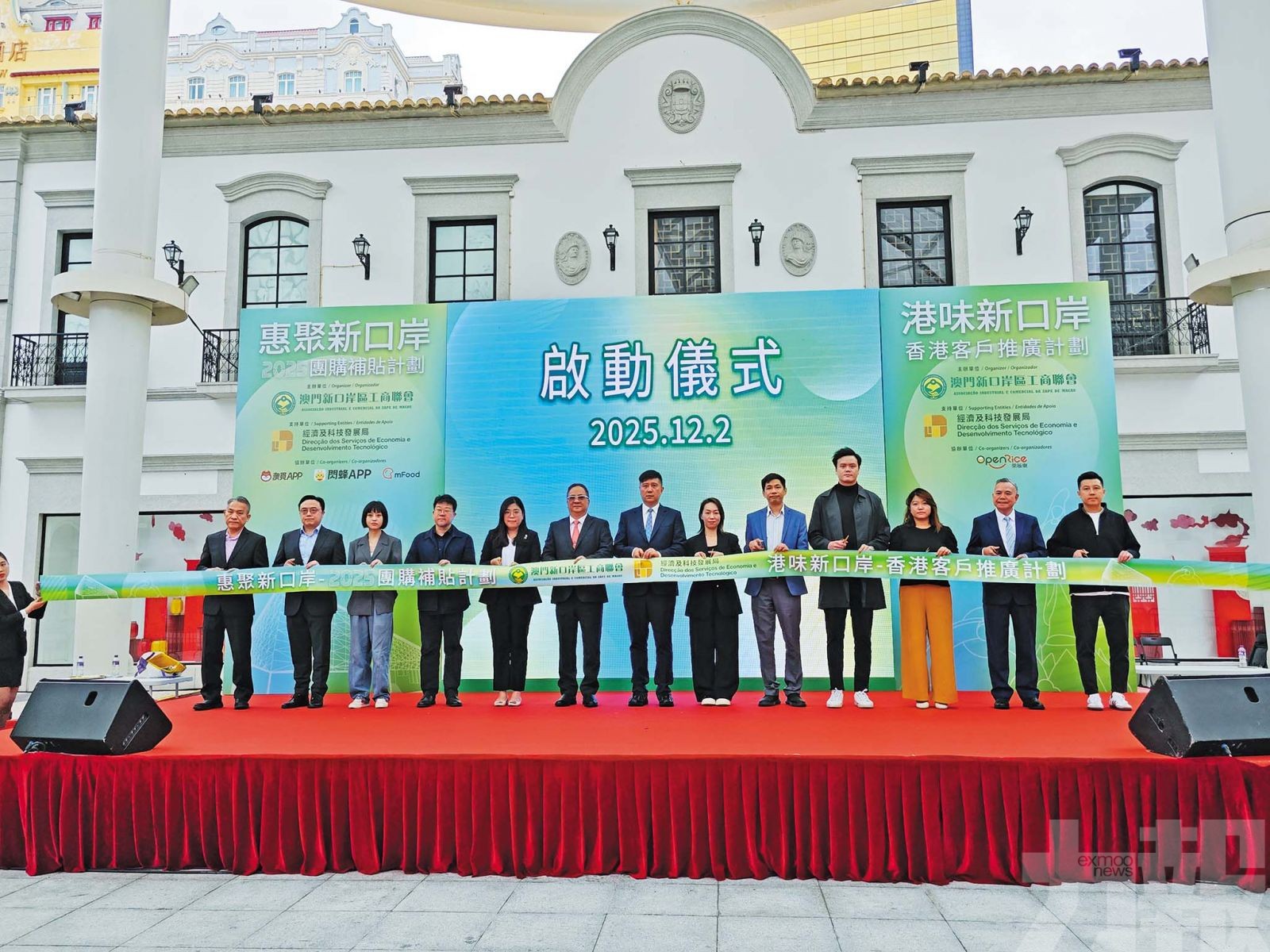 澳門新口岸區工商聯會於昨(2)日下午假漁人碼頭勵駿廣場,舉行商圈振興計劃啟動儀式,分別推出團購補貼計劃及香港客戶推廣計劃,預計 250間商戶參加,活動投入資金約 300萬元。商會表示,計劃是整合線上線下平台資源,通過創新消費模式刺激區內經濟,提升商戶競爭力及品牌影響力,激勵區內商業活力,呼籲商戶積極參與,攜手共建更具活力的新口岸商圈。