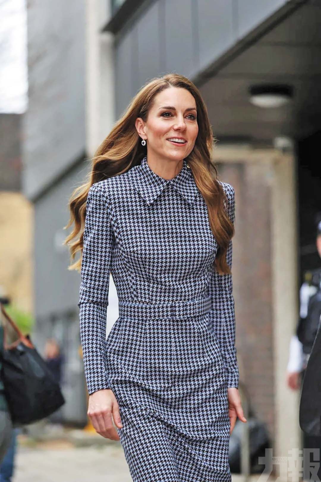 英國凱特王妃去年確診癌症並接受腹部手術,歷經約九個月化療治療後,身體逐步康復,近期開始重返王室公務。她日前到訪兒童心理慈善機構「安娜佛洛伊德中心」(Anna Freud Centre),身穿一襲黑白千鳥格紋洋裝現身,展現一貫的優雅氣質。