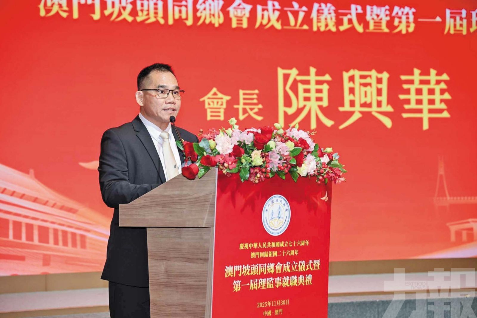 典禮在莊嚴的國歌聲中拉開帷幕。陳興華會長帶領全體理監事在各界嘉賓見證下鄭重宣誓就職。陳興華在致辭中表示,同鄉會將秉持「愛國愛澳、聯鄉聯誼」的創會宗旨,團結在澳鄉親,構建情感共同體,積極推動澳門與坡頭在文化、經貿、青年交流等領域的務實合作。