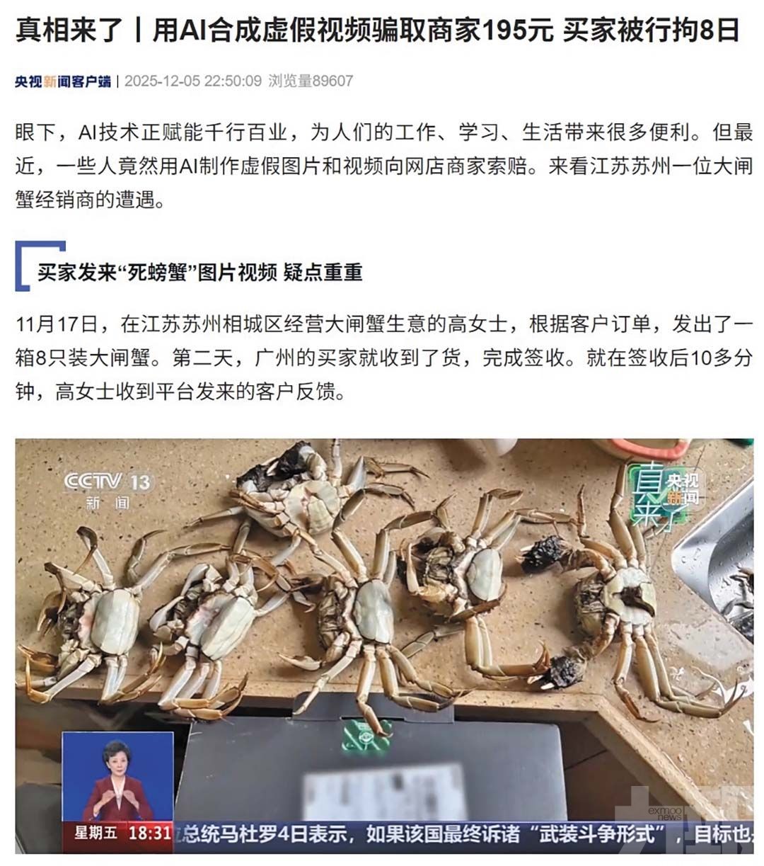 相關報道指出,今年9月起施行的《人工智能生成合成內容標識辦法》,已要求AI生成內容須具備顯式或隱式標識,以增強辨識度、防範濫用。央視亦揭露多宗AI造假騙退款案例,專家提醒商家須第一時間保存聊天紀錄、圖片與影片等證據,涉及金額較大者,更可能觸及刑事責任。