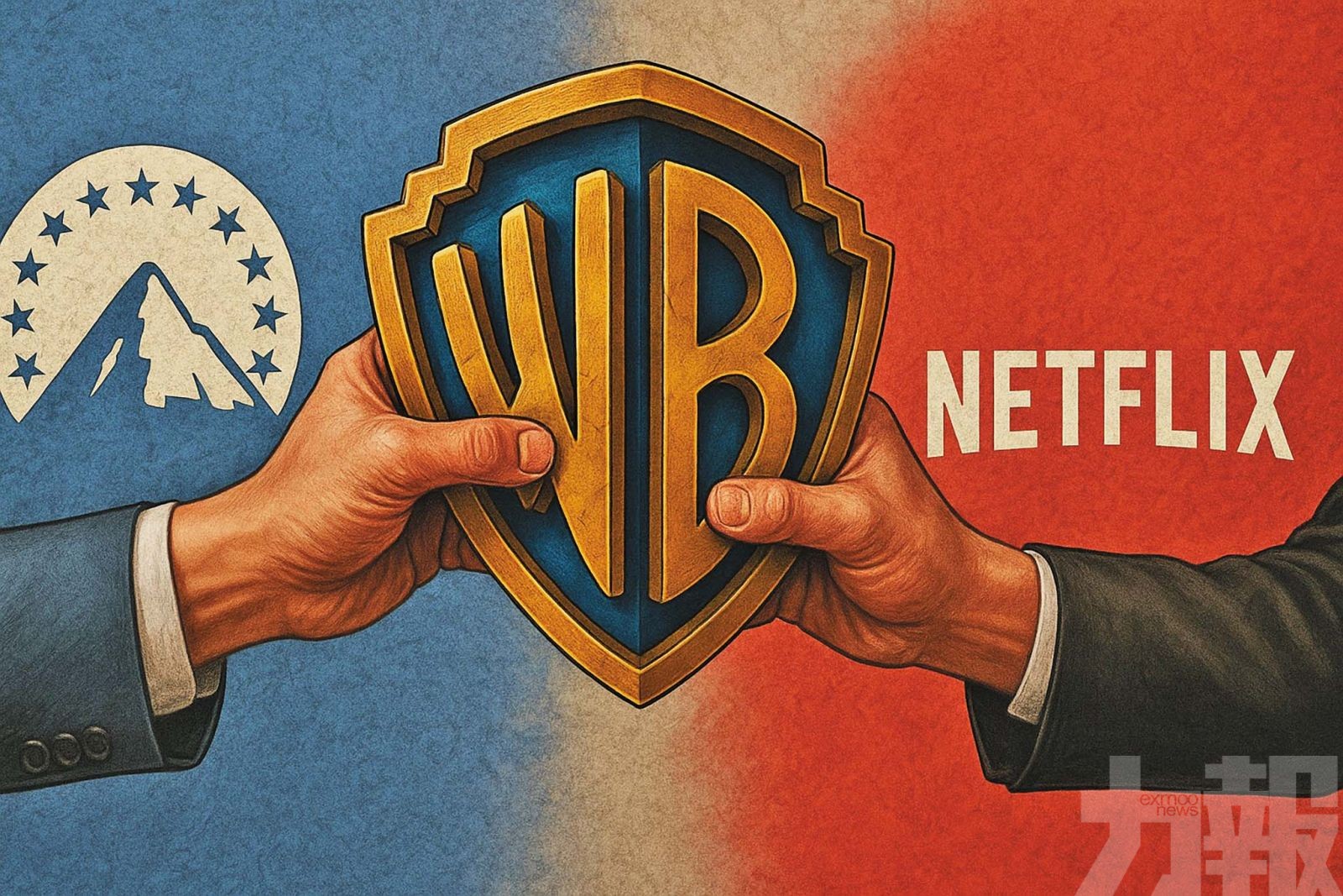 派拉蒙影業正式對華納兄弟發動敵意收購要約,價格高於網飛方案。(AI生成圖片)