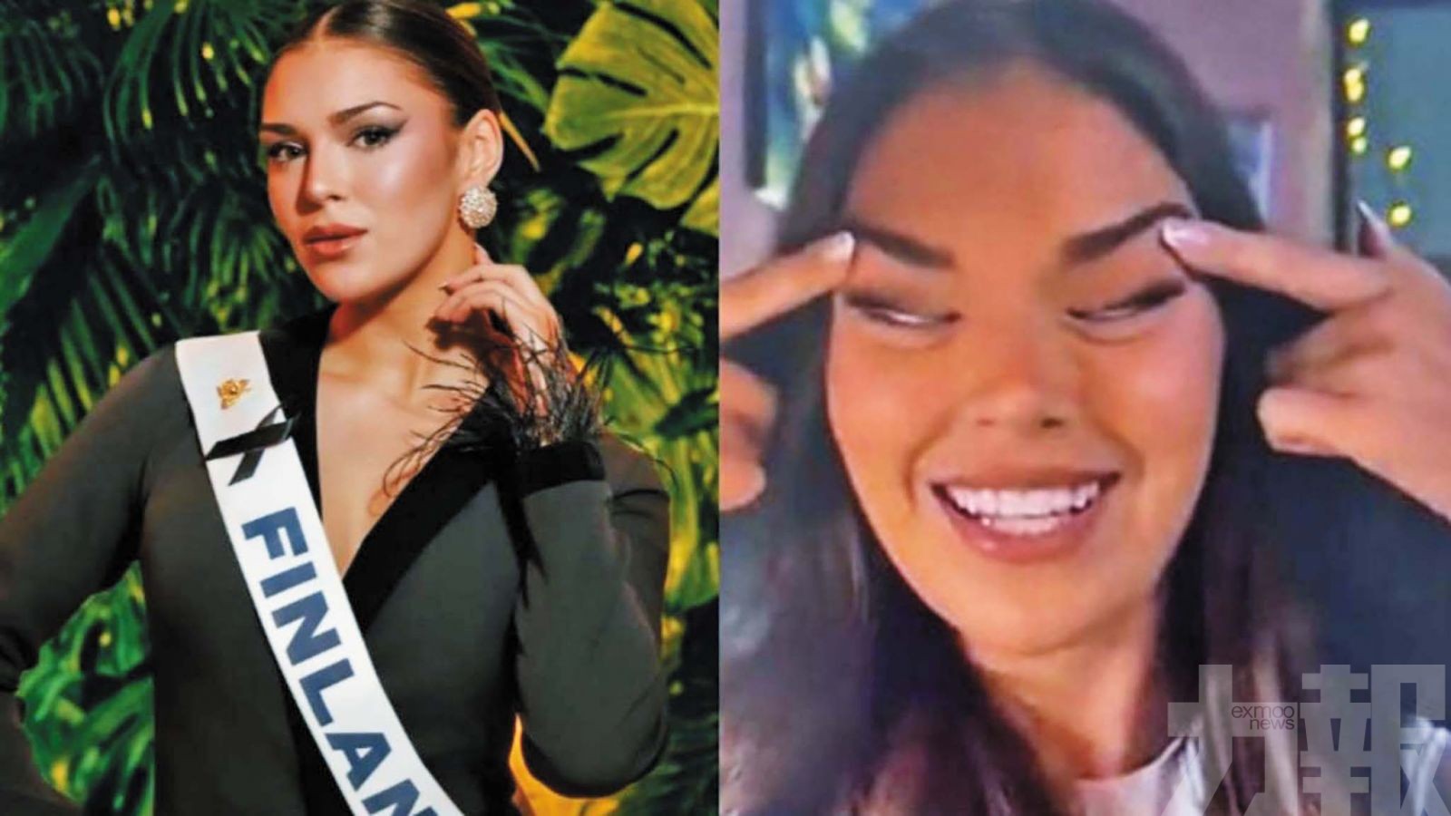 芬蘭小姐扎夫斯上傳一張「瞇眼」姿勢的照片被取消冠軍頭銜。(網絡圖片)