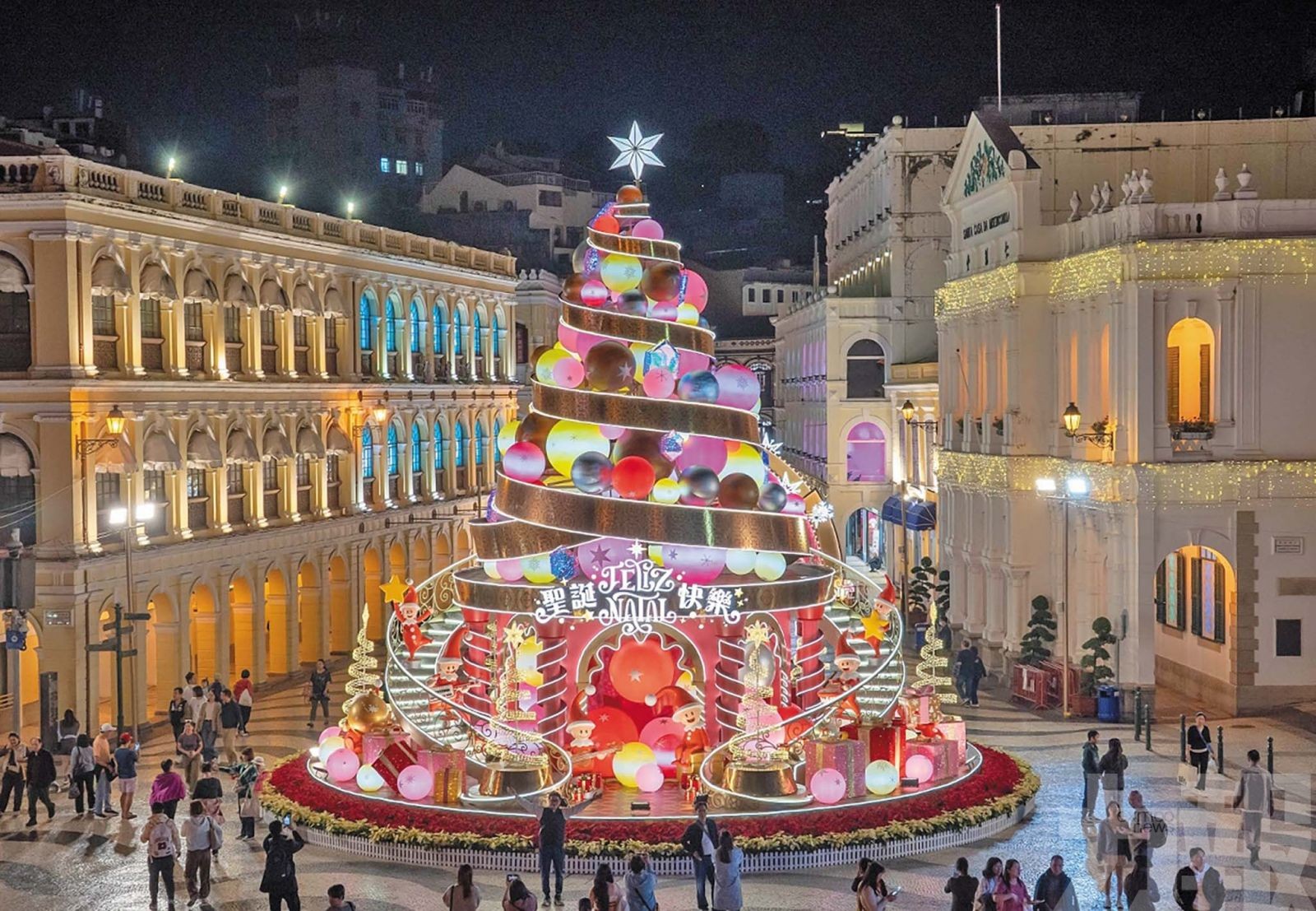 當中於議事亭前地除佈置大型燈光隧道外,還安裝了一組色彩繽紛的大型聖誕樹,以金色蝴蝶結為主軸,堆疊各式各樣彩球;樹兩旁以旋轉樓梯作點綴,周邊配置禮物盒、彩球以及造型可愛的聖誕老人及小精靈,增添了趣味和節慶感。另外,於澳門科學館亦可見到聖誕老人乘坐太空船降落的座地燈飾;氹仔中央公園則配置了多個造型可愛聖誕角色的聖誕樹、各類燈光裝置及聖誕吊飾;運動場圓形地以遊樂園為主題,透過聖誕老人、雪人、薑餅人等,傳遞歡樂溫馨的氣氛。