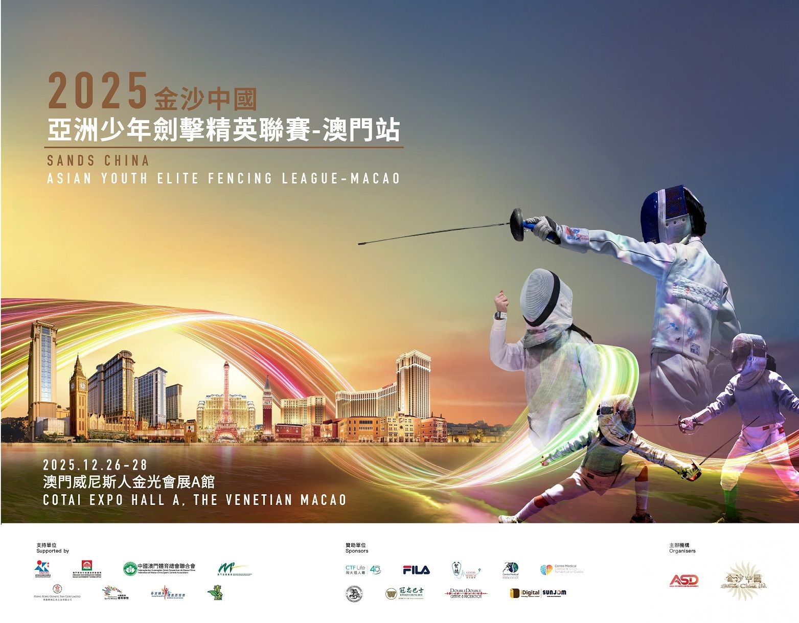 「2025金沙中國亞洲少年劍擊精英聯賽–澳門站」由金沙中國有限公司與亞洲體育發展有限公司聯合主辦,並獲澳門特別行政區體育局及旅遊局全力支持。賽事及其延伸活動均免費對外開放,歡迎入場觀賞。賽事詳情可參閱: