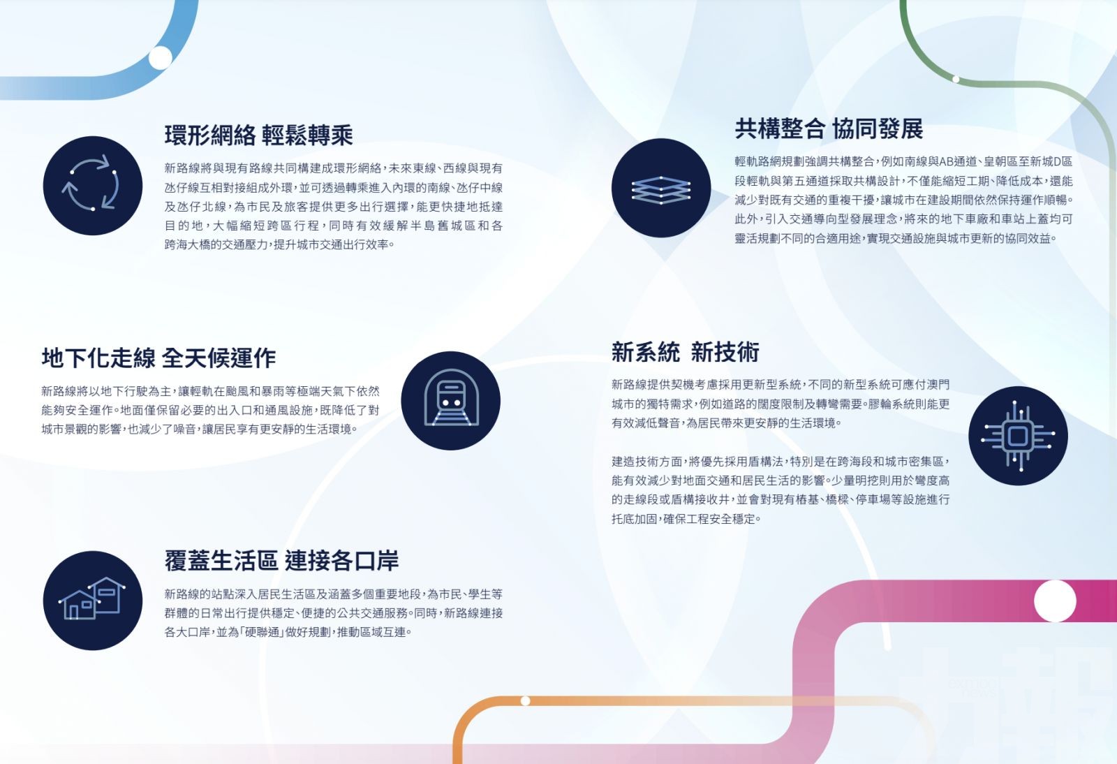 運輸工務司司長譚偉文致辭時表示,近年來澳門輕軌建設已取得一定的成果,為提升城市的交通運輸效率發揮了積極作用,但隨著城市的不斷發展,需進一步及早制訂輕軌的發展策略,以更好適應未來的需求。今次研究勾劃出輕軌未來的全景佈局,制訂整體輕軌線路藍圖。特區政府高度重視社會各界對輕軌發展的意見及建議,有序開展意見收集工作,務求規劃方案更貼合社會需求。