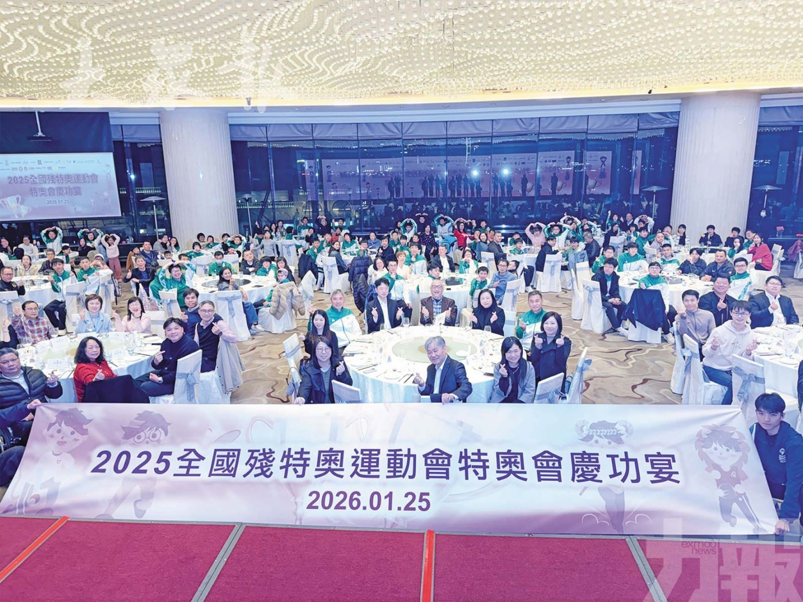 由澳門特殊奧運會主辦、金沙中國贊助的「2025全國殘特奧運動會—特奧會慶功宴」,昨晚七時半假澳門皇冠假日酒店舉行,嘉許澳門特奧運動員與團隊在2025全國殘特奧運動會中的卓越表現,並感謝各贊助及支持單位。活動吸引逾250人參與,場面熱鬧溫馨。