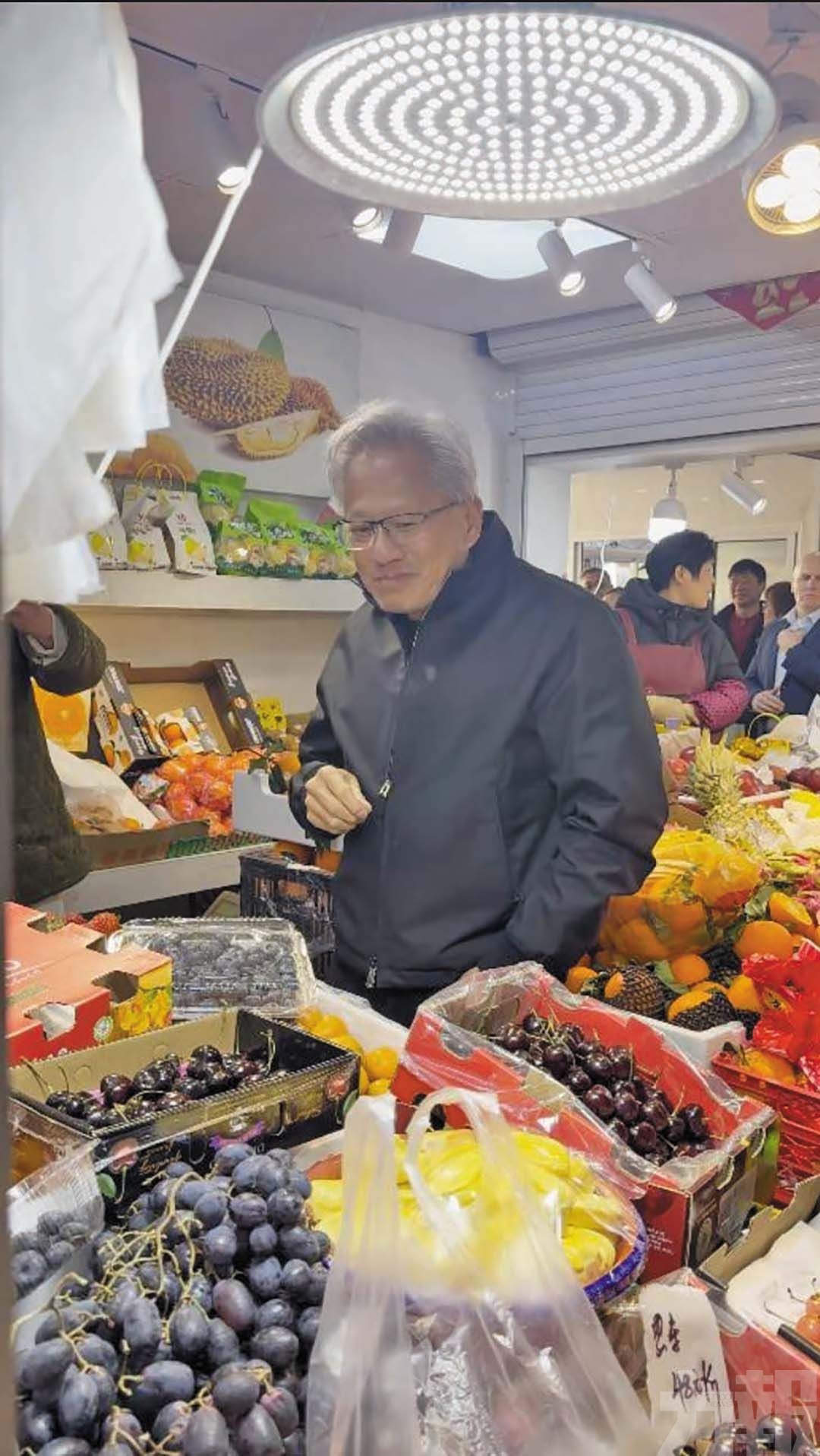 據內地媒體報道,黃仁勳日前中午到訪陸家嘴乳山路一處菜市場,邊走邊品嚐小籠包,並與多名水果、糕點攤商閒聊互動,不少市民即場要求合影,他亦一一配合。期間,他在一間水果攤購買栗子及冰糖葫蘆,消費約65 元人民幣,由隨行人員代為付款。
