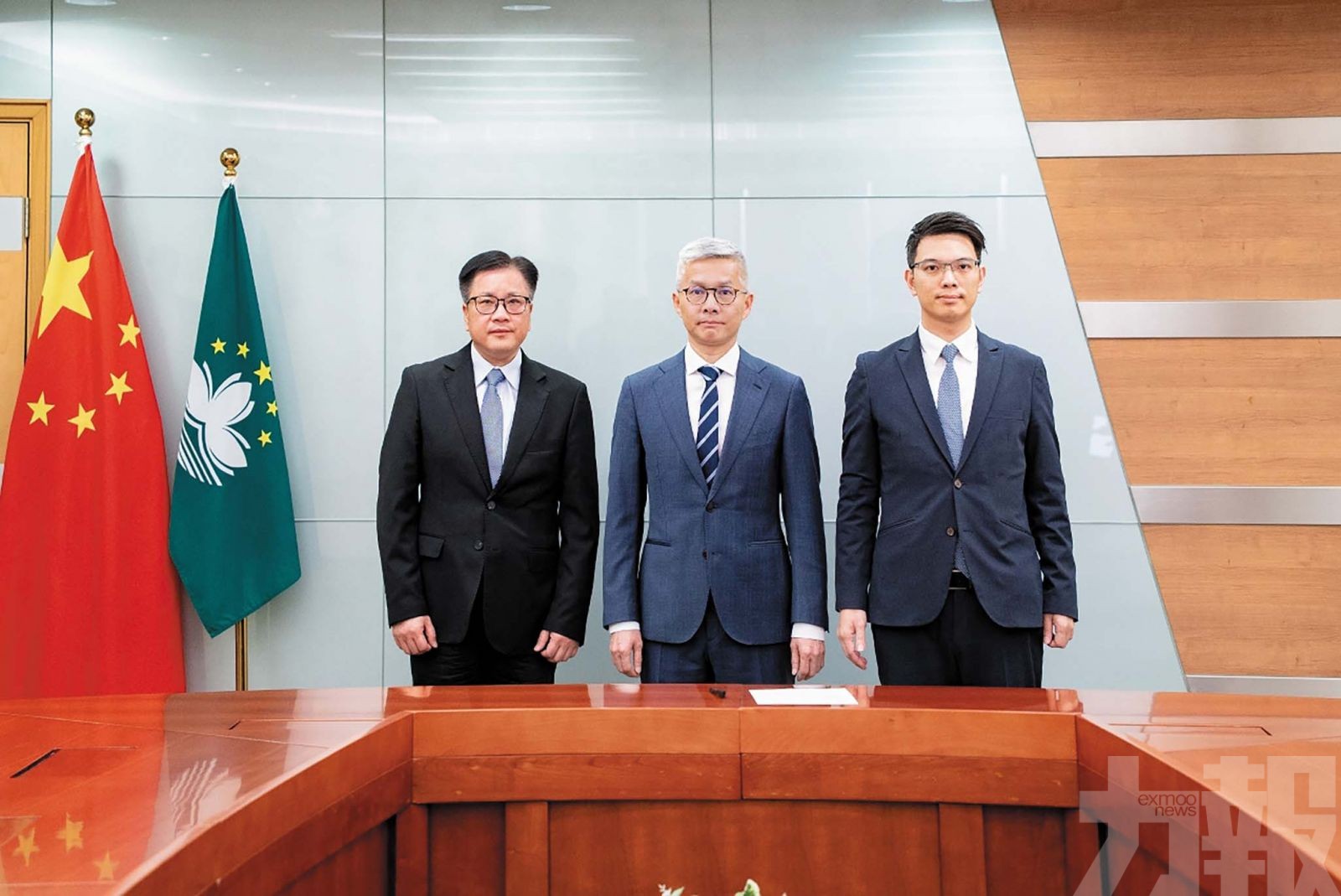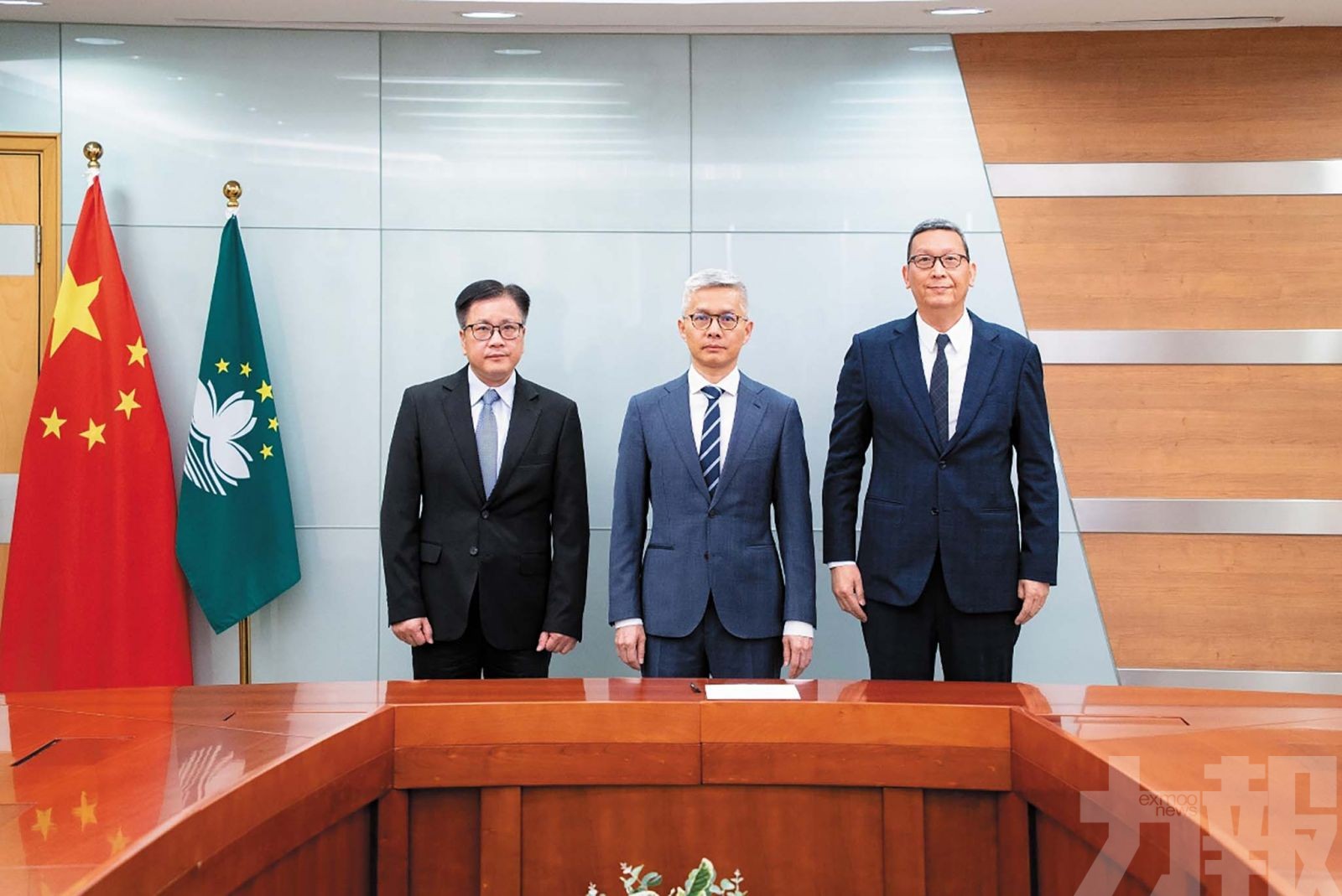 經濟財政司司長戴建業、司長辦公室主任羅志輝與統計暨普查局局長龐啓富合照。 (經財司司長辦公室圖片)