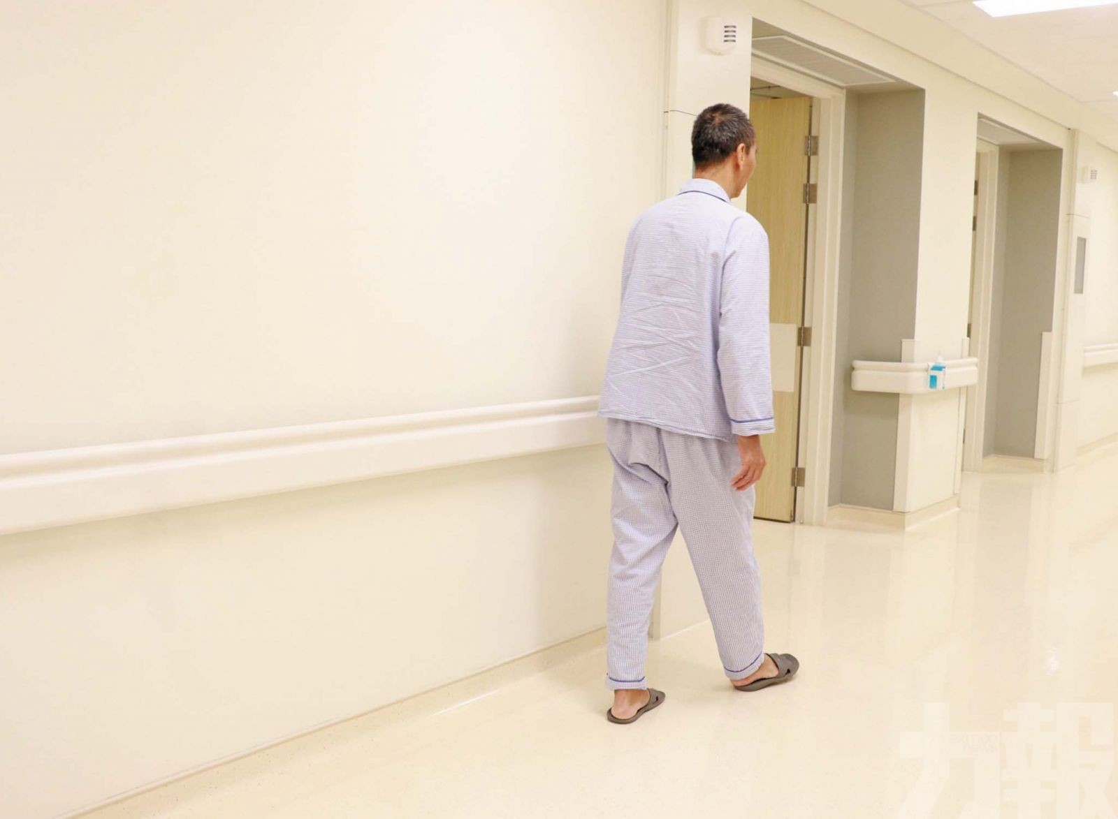 患者在術後第一天即可在助行器輔助下進行床邊站立及短距離行走。(林嘉欣攝)