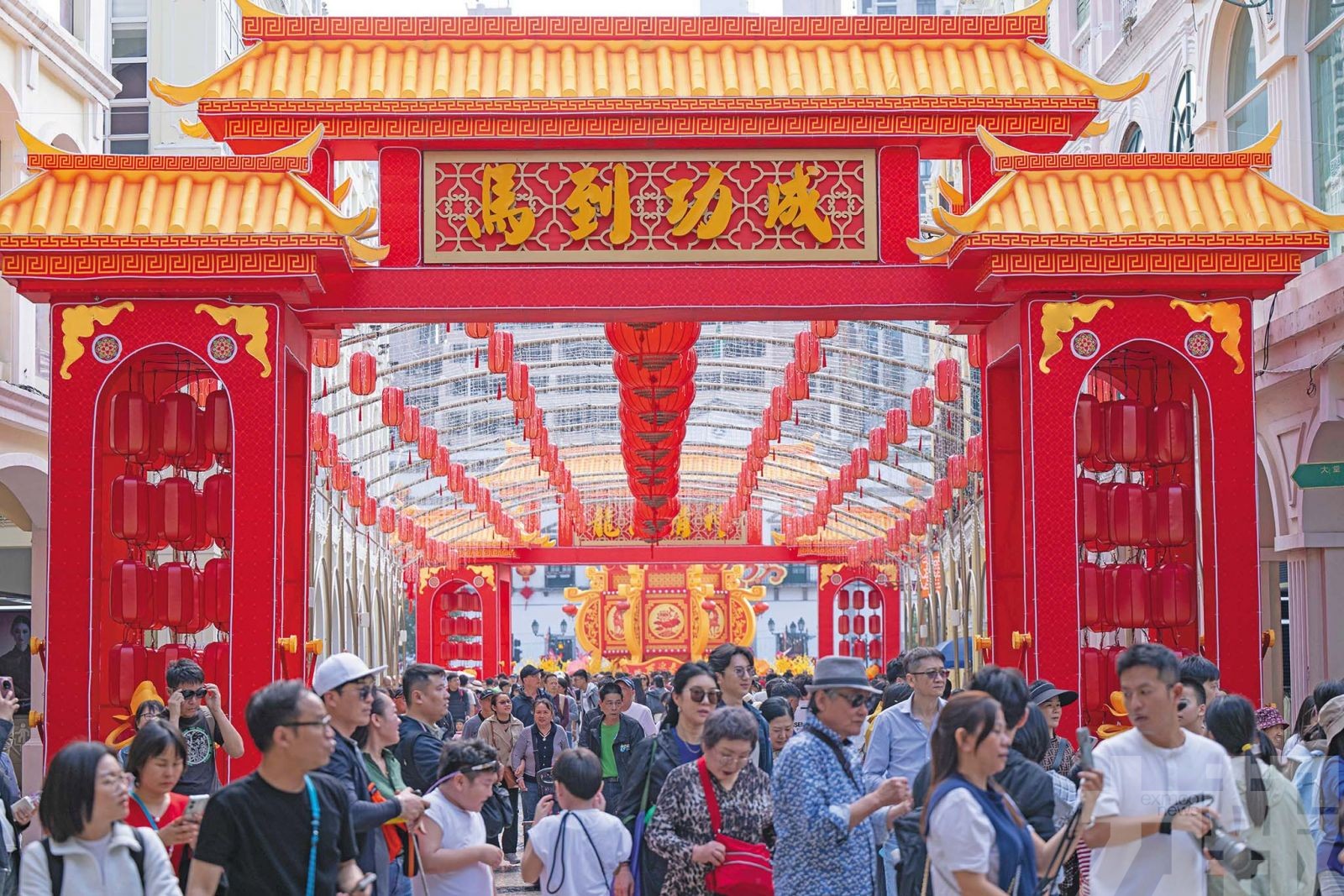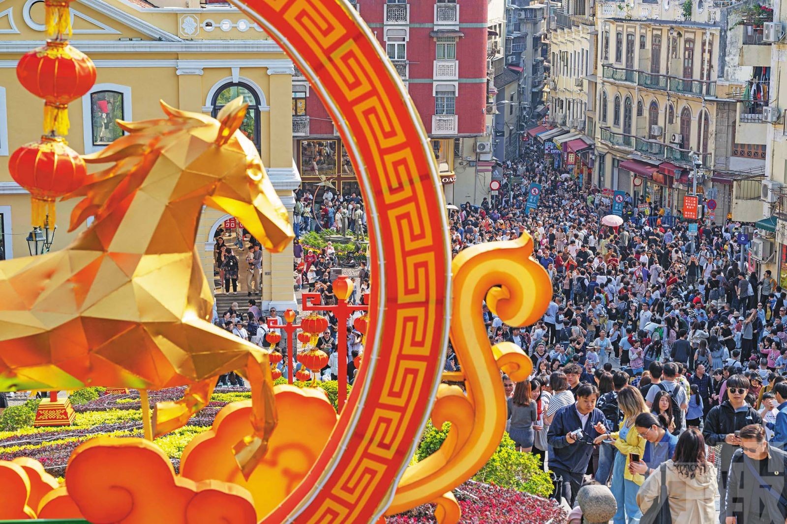 今年新春,仍以中區大三巴牌坊、議事亭前地一帶客流最多。 (新華社圖片)