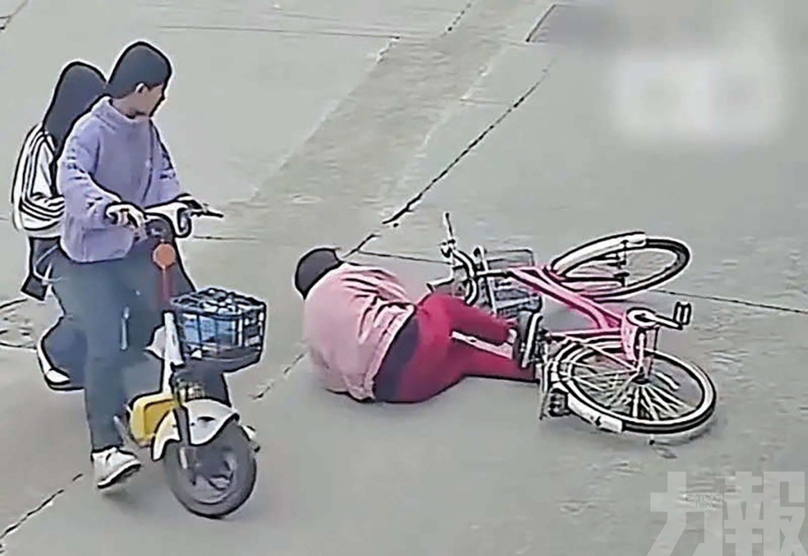福建莆田兩名女孩早前看到一名老婦騎自行車摔倒上前攙扶,事後竟遭這名婦人索賠22萬元。(網絡圖片)