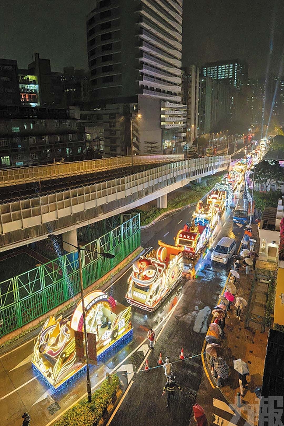 17部花車組成的隊伍由沙梨頭北街起步,途經青洲大馬路、拱形馬路、黑沙環馬路、慕拉士大馬路、黑沙環第四街、長壽大馬路、市場街至祐漢街市公園,即使遇上雨天,仍吸引不少民眾駐足觀賞。