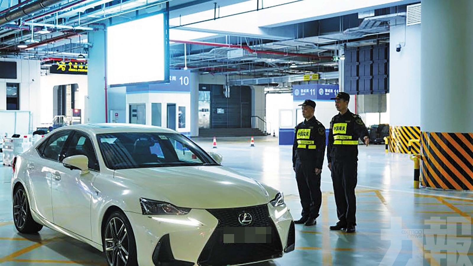 橫琴海關關員在橫琴口岸客貨車粵澳聯合一站車道開展現場監管。(拱北海關圖片)