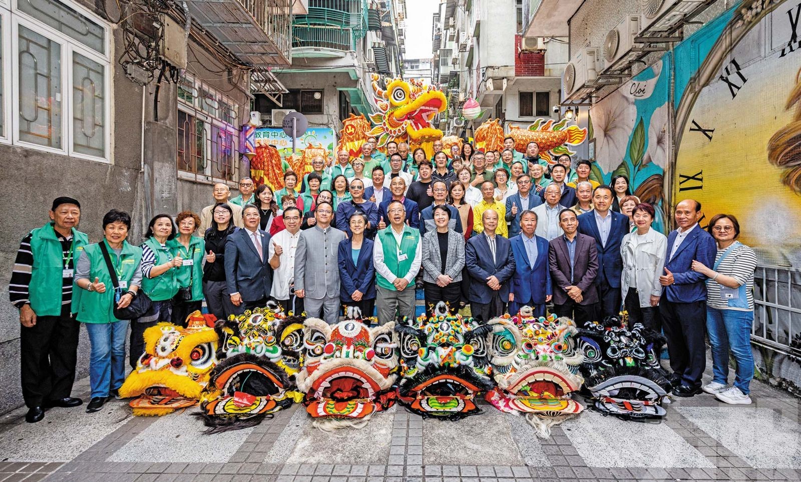 隨後舉行金龍點睛、醒獅掛紅簪花及分切福肉等儀式,羅盛宗帶領嘉賓進廟上香,祈求國家富強、澳門繁榮、社區和諧、居民平安。金龍醒獅隨即沿雀仔園坊巡迴採青,一眾街坊及善信熱情參與,場面熱鬧,不少居民駐足觀賞,感受傳統節慶氣氛。