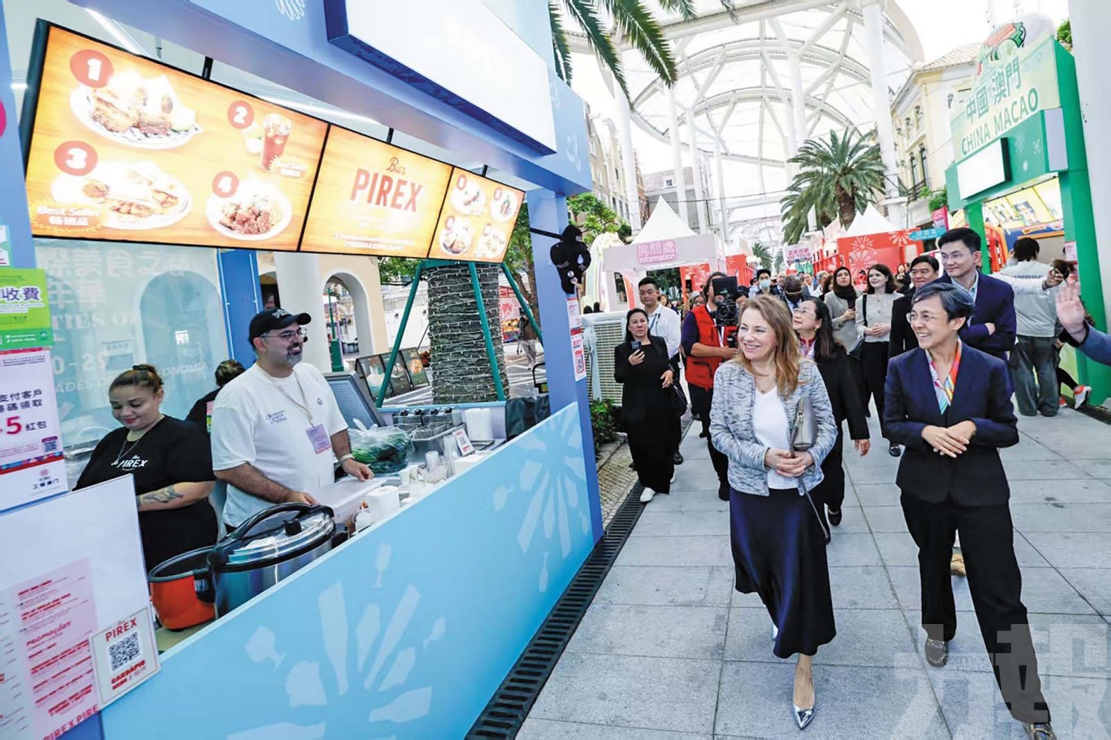 「 2026澳門國際美食之都嘉年華 」現正熱鬧舉行,圖為嘉賓參觀展位品嘗美食。 (旅遊局圖片)