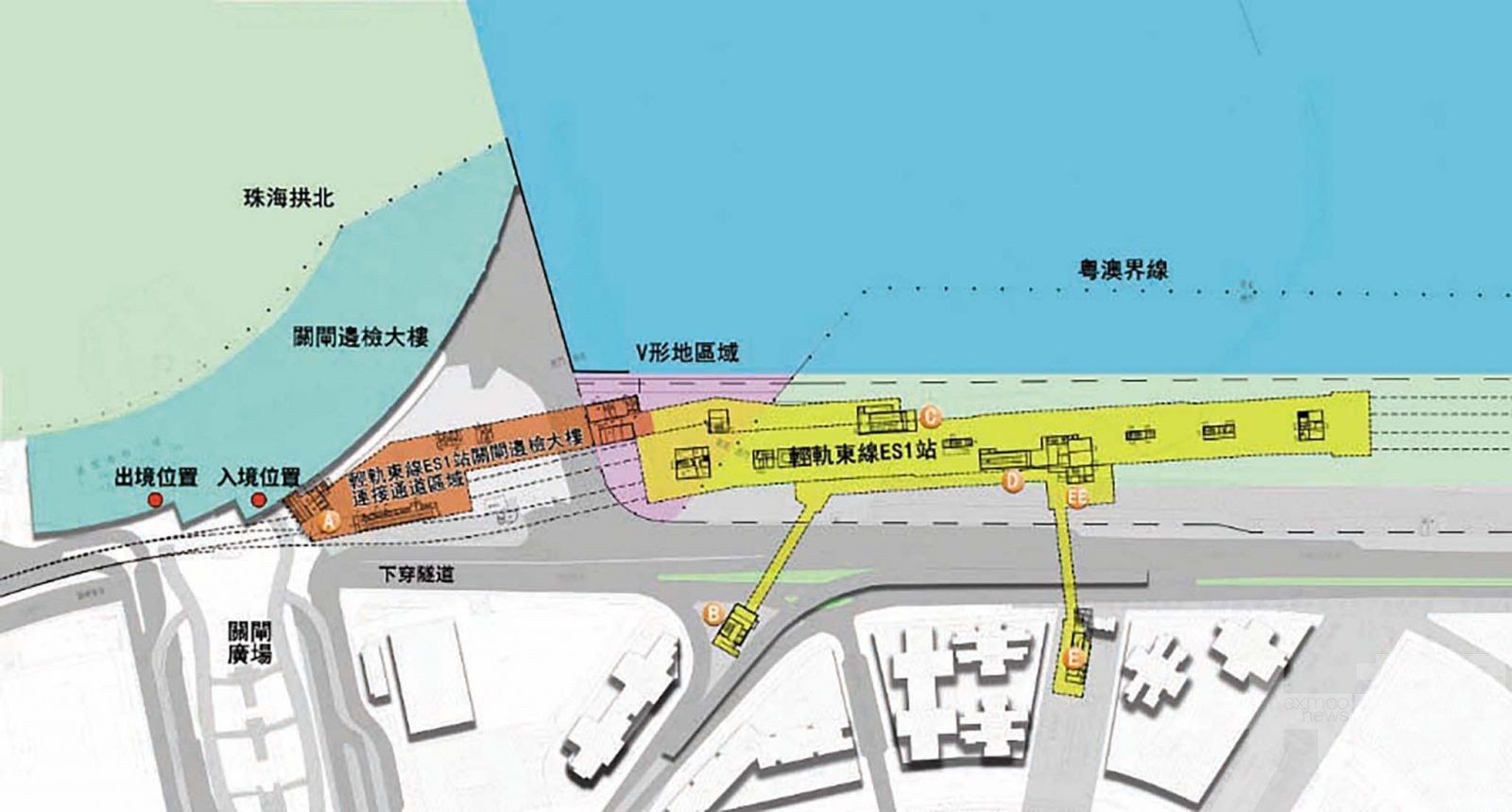 公共建設局表示,輕軌東線正有序推進各項工作,受惠於鄰近關閘的V形地供輕軌東線建設,已將東線ES1站移至更靠近關閘邊檢大樓,通過利用關閘廣場地面和地下空間,興建全天候行人通道連接輕軌東線ES1站和關閘邊檢大樓,為市民及旅客提供舒適和便捷的通行及搭乘環境,亦有助分流地面出入境人流。另外,藉着建設上述全天候通道的時機,通過共構模式,進行盾構隧道延伸至青茂口岸及市民公園的預留工程,為日後輕軌東線延伸線項目啟動創造條件。