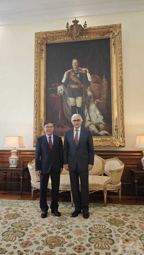 圖為2024年7月2日,駐葡萄牙大使趙本堂拜會葡共和國議會議長阿吉亞爾-布蘭科。