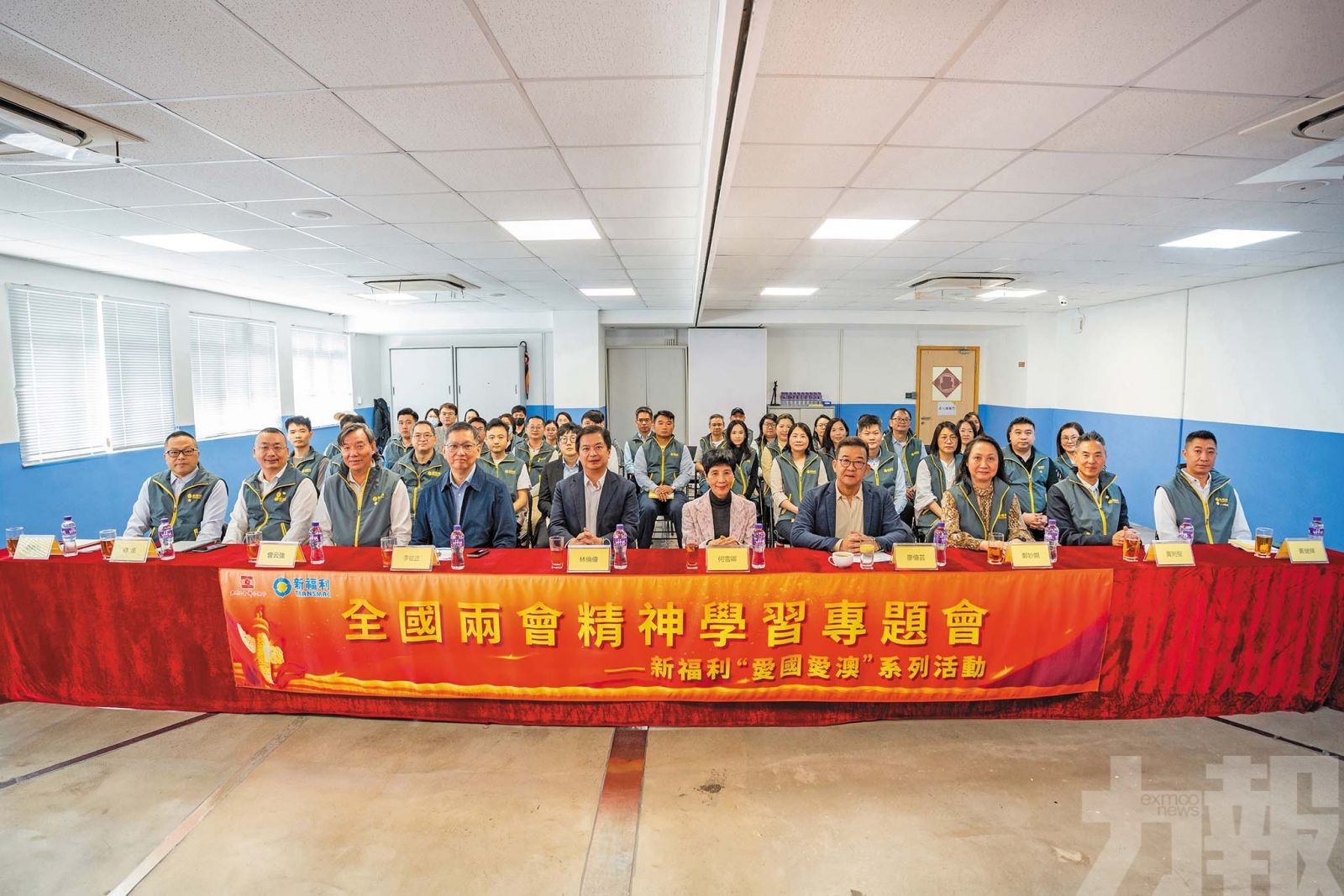 為深入學習貫徹2026年全國「兩會」精神,厚植全體員工愛國愛澳家國情懷,引導員工準確把握國家發展大局、自覺對接國家戰略部署,澳門新福利聯合澳門工會聯合總會(下稱工聯總會),延續「愛國愛澳」系列活動傳統,日前舉辦全國兩會精神專題學習會。