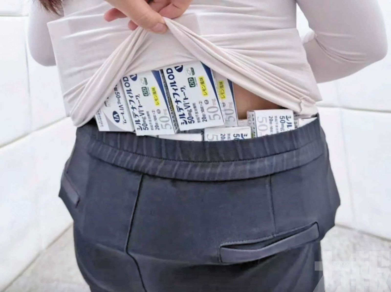 一名女性旅客人身綁藏大量「 偉哥 」藥品入境內地被查獲。 (網絡圖片)