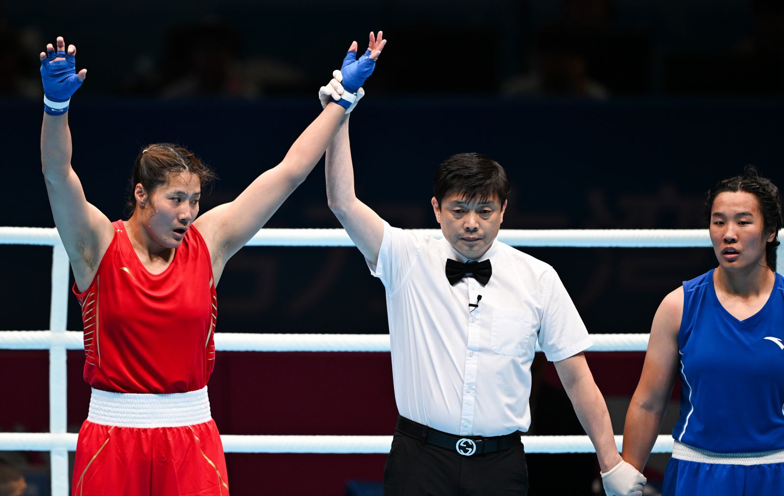 11月12日,第十五屆全國運動會女子拳擊66公斤級決賽中,北京體育大學隊選手禹立賽以5:0擊敗河南選手李書奪冠。