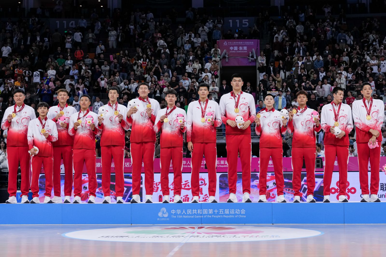 第十五屆全國運動會男籃決賽11月12日進行,廣東隊以101:65大勝浙江隊,贏得冠軍獎盃。