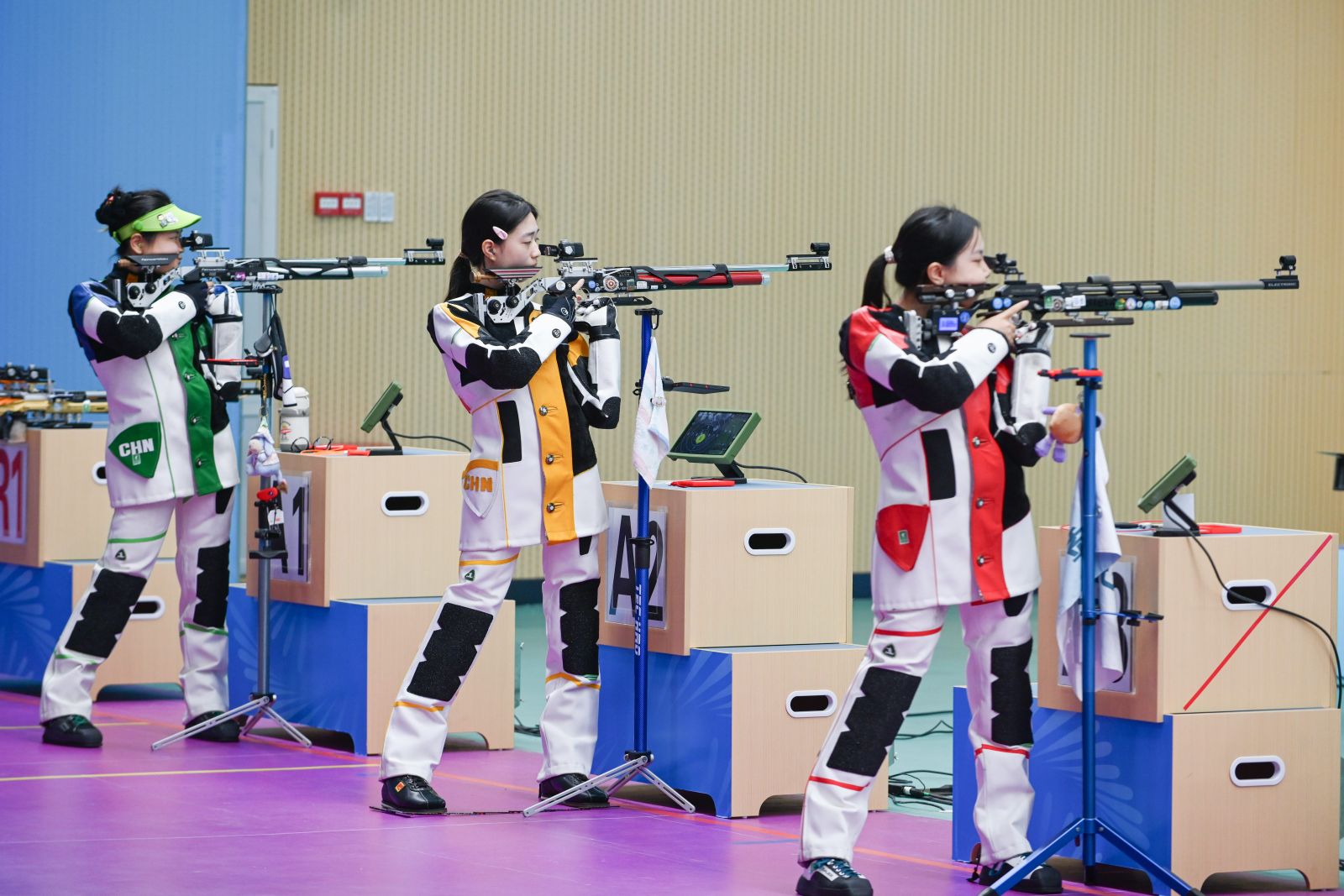 (10月14日,第十五屆全運會女子10公尺氣步槍團體決賽在廣州舉行)